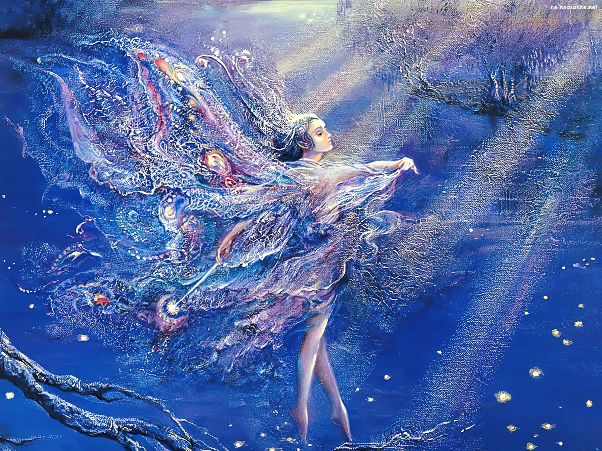 Promienie, Woda, Dziewczyna, Motyl na Komórkę