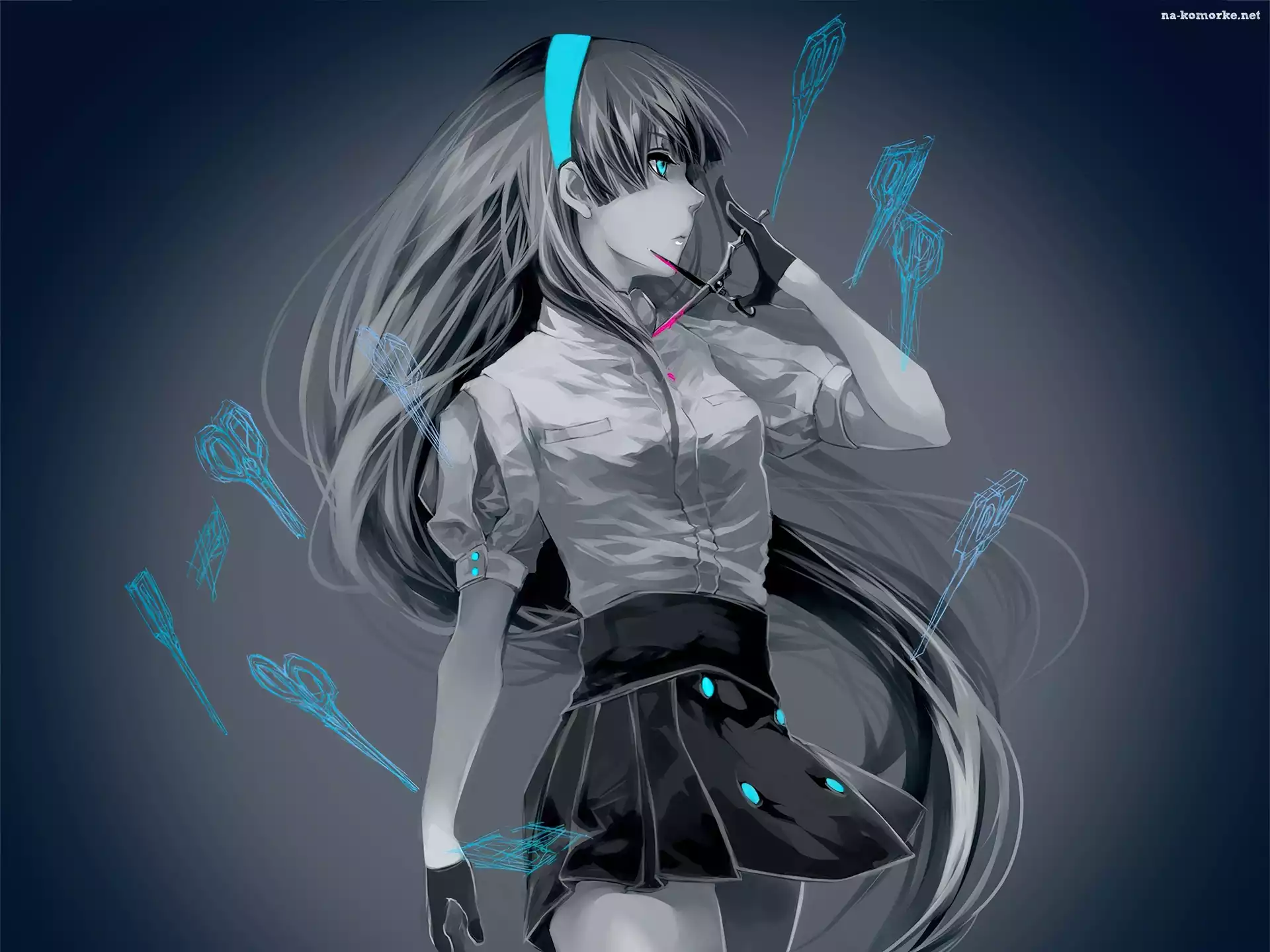 Dziewczyna, Elementy, Nożyczki, Błękitne na Komórkę