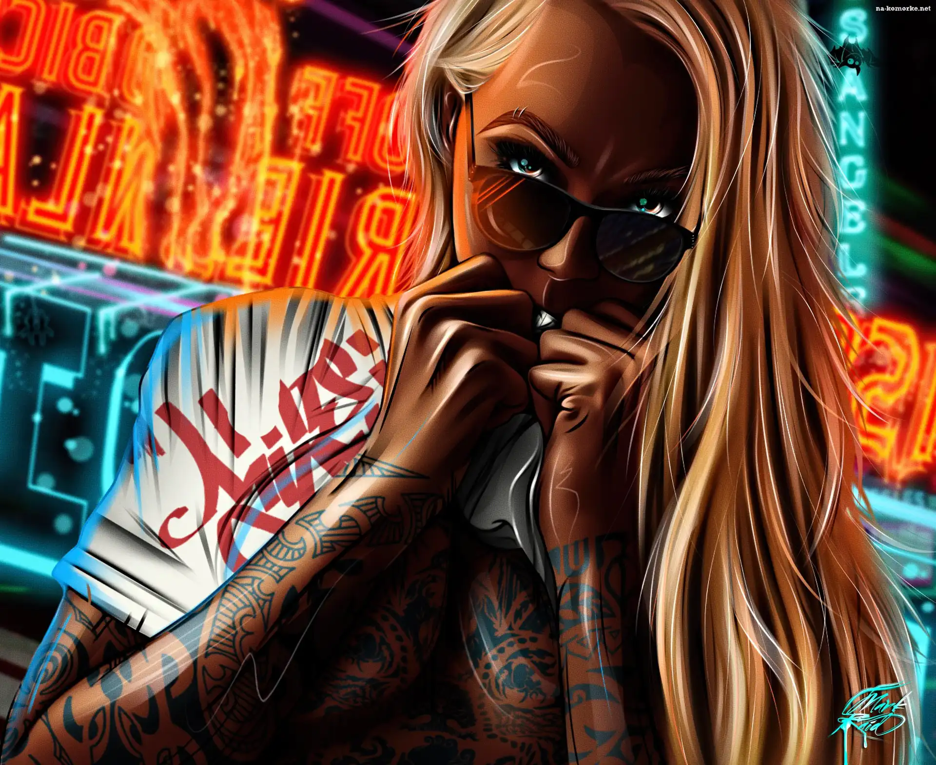 Dziewczyna, Grafika, Okulary, Tatuaż na Komórkę
