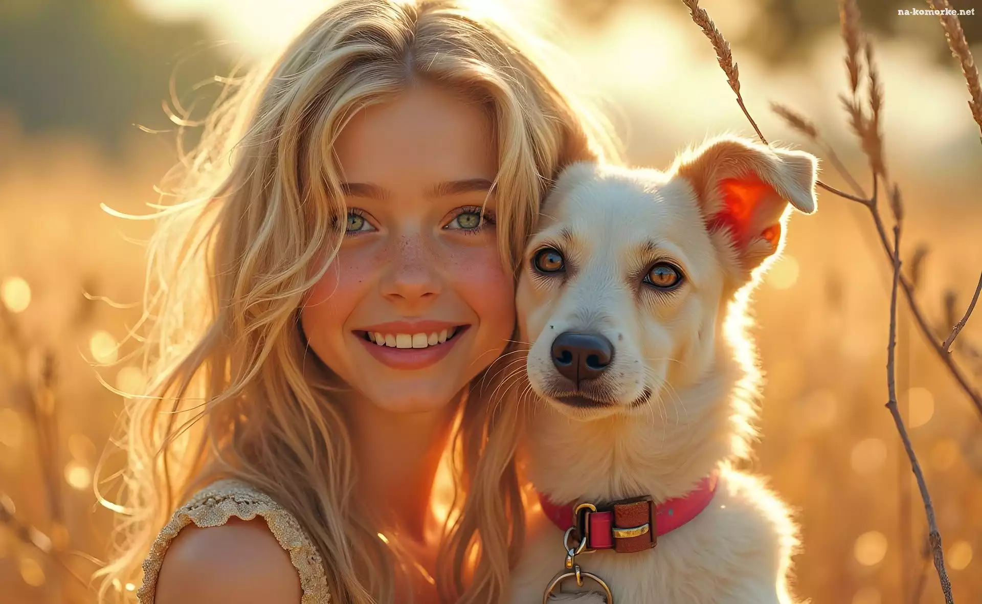 Pies, Łąka, Blondynka, Dziewczyna na Komórkę