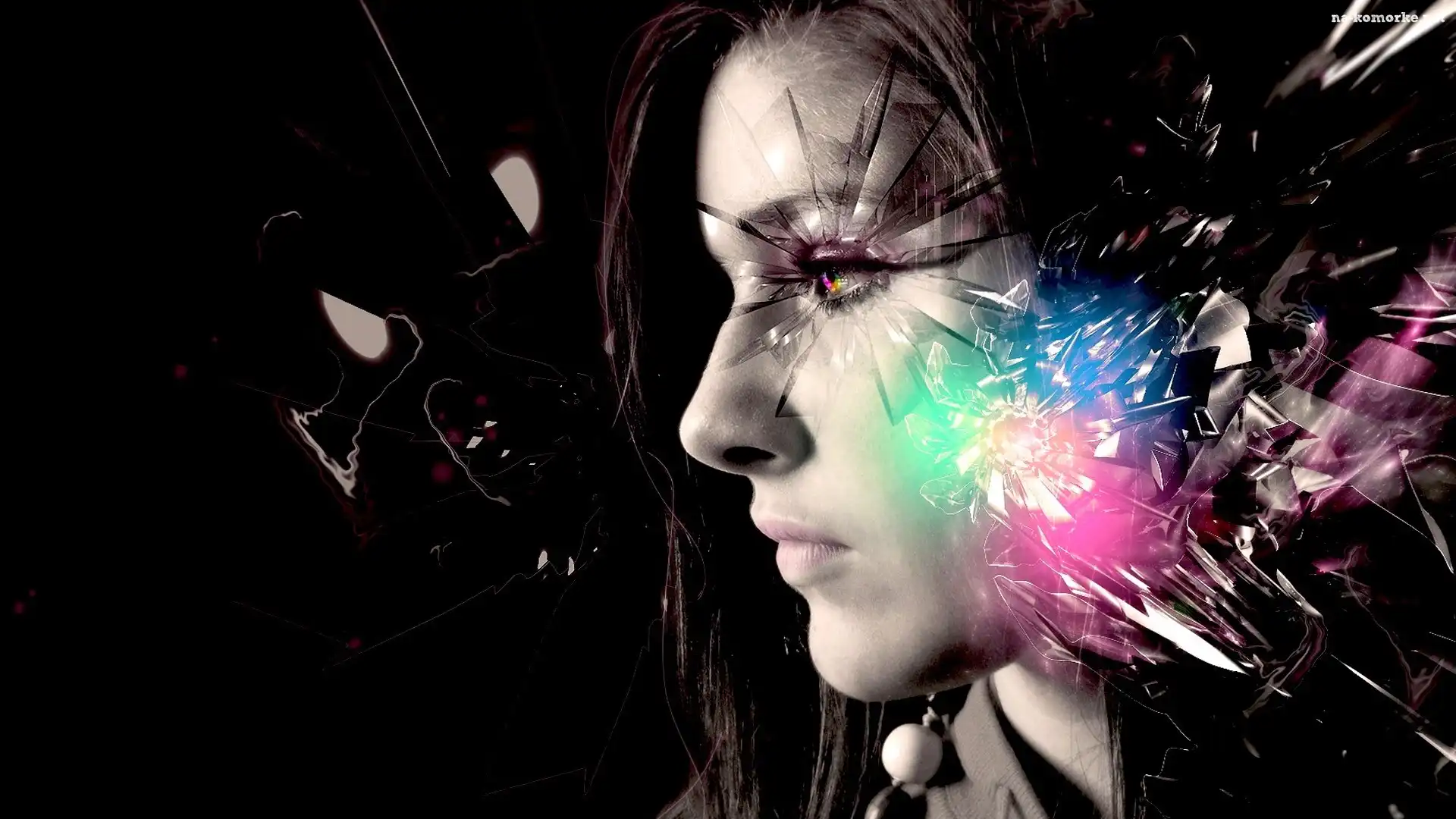 Dziewczyna, Grafika, Rozbita, Szyba na Komórkę