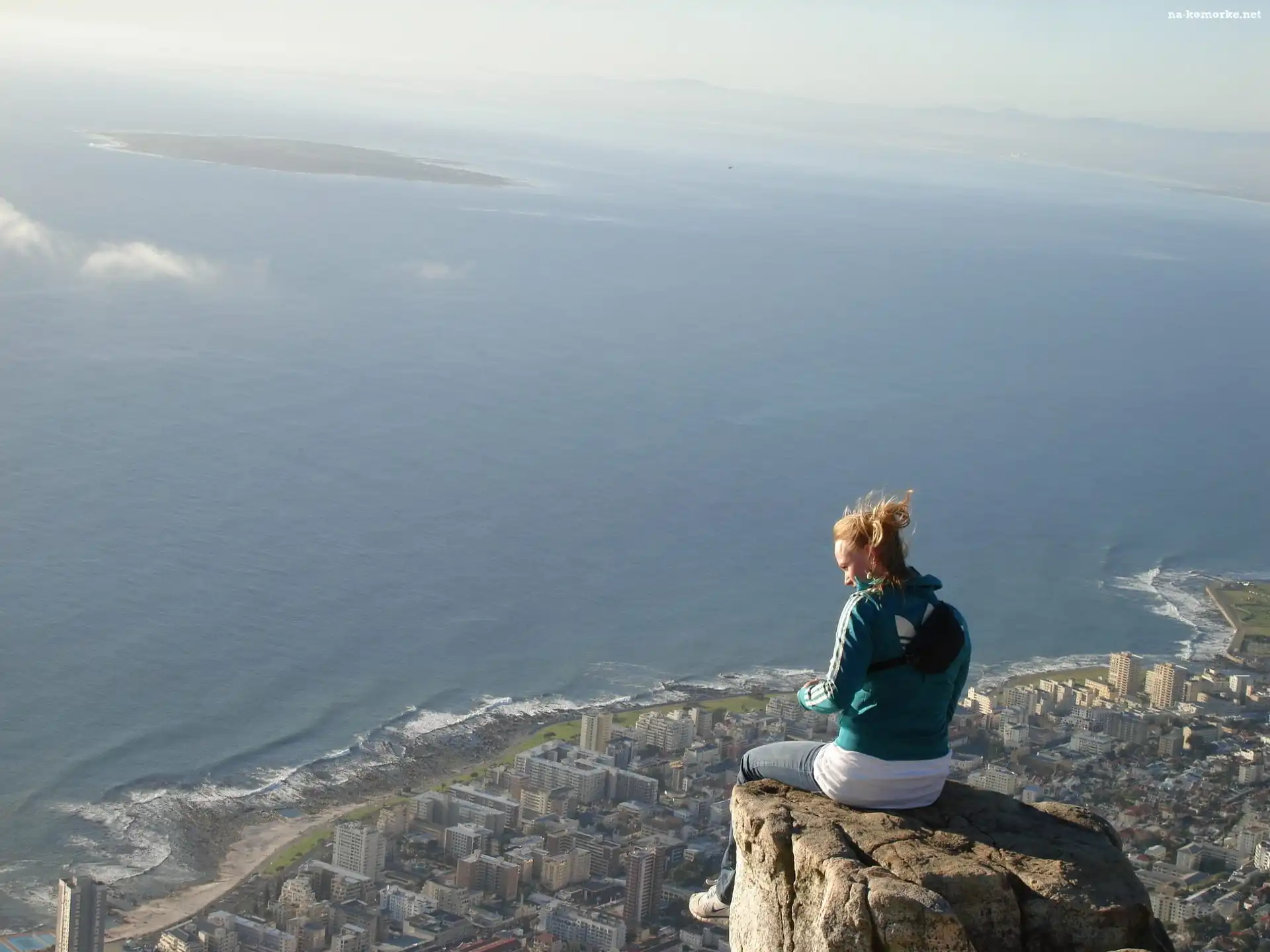 Dziewczyna, Miasto, Skała, Morze na Komórkę
