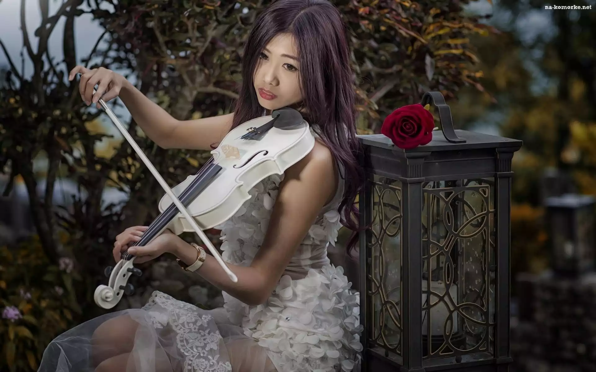 Dziewczyna, Ogród, Skrzypce, Róża na Komórkę