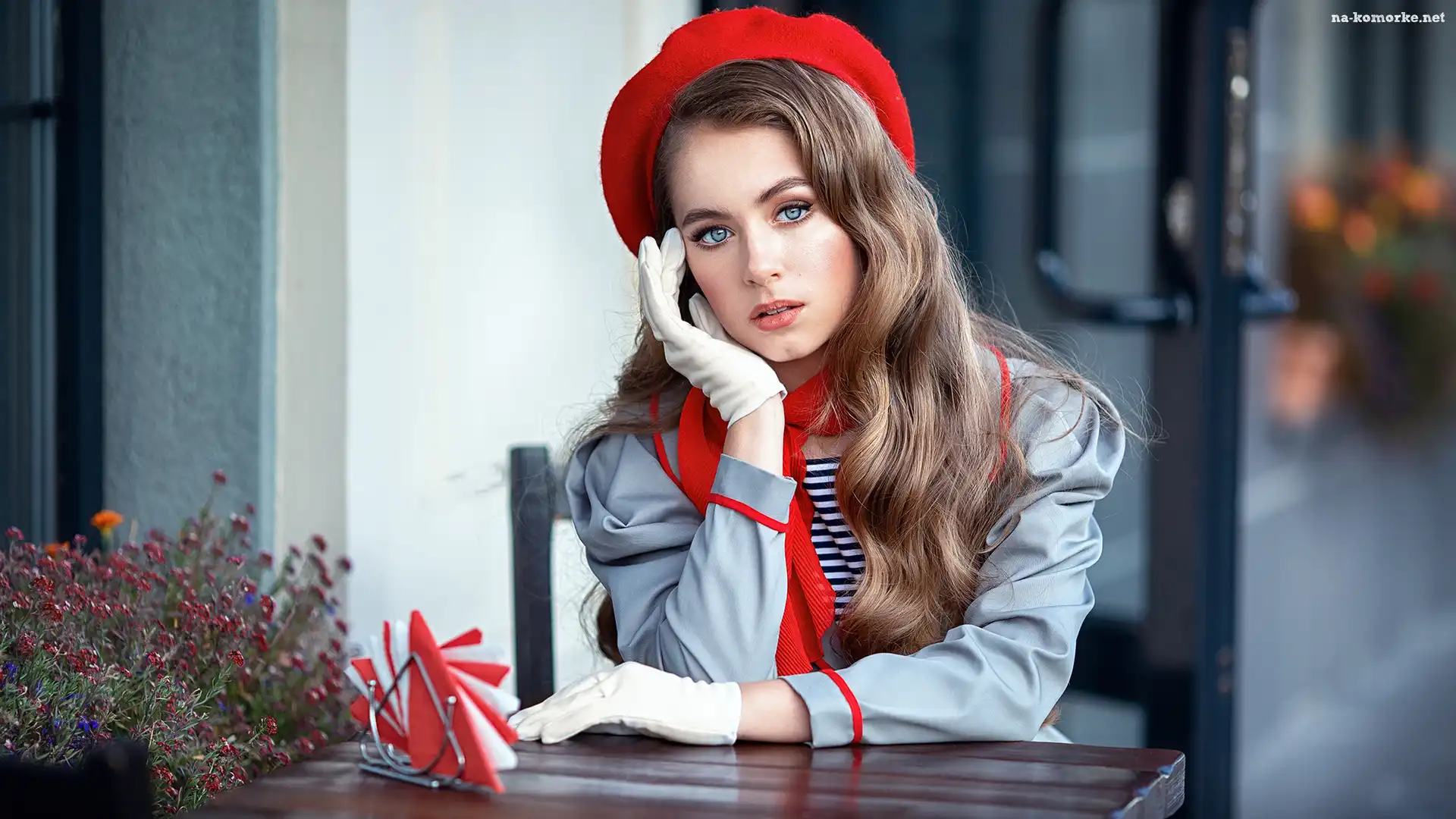Dziewczyna, Beret, Szatynka, Czerwony na Komórkę
