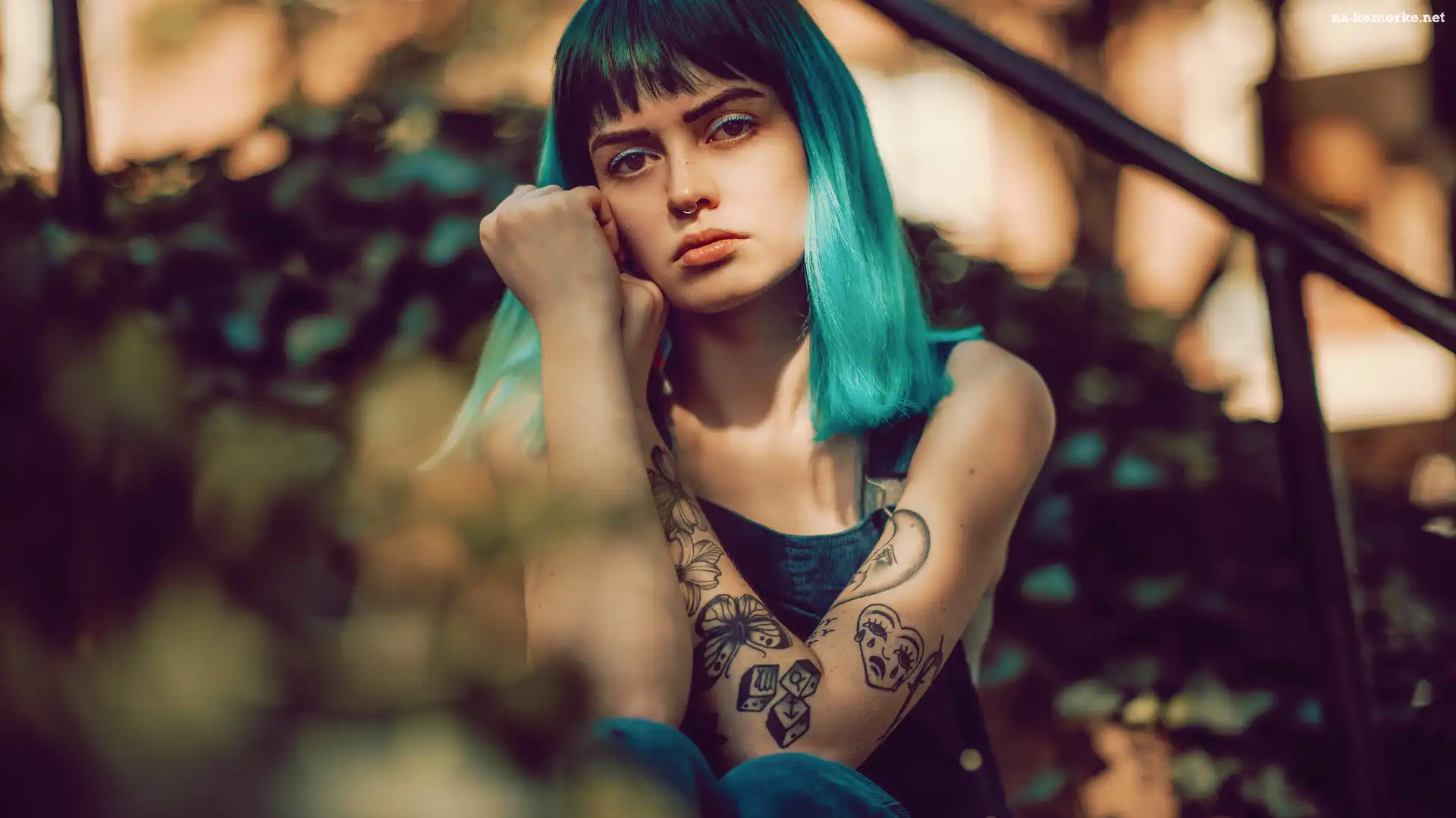 Dziewczyna, Tatuaż, Turkusowe, Włosy na Komórkę
