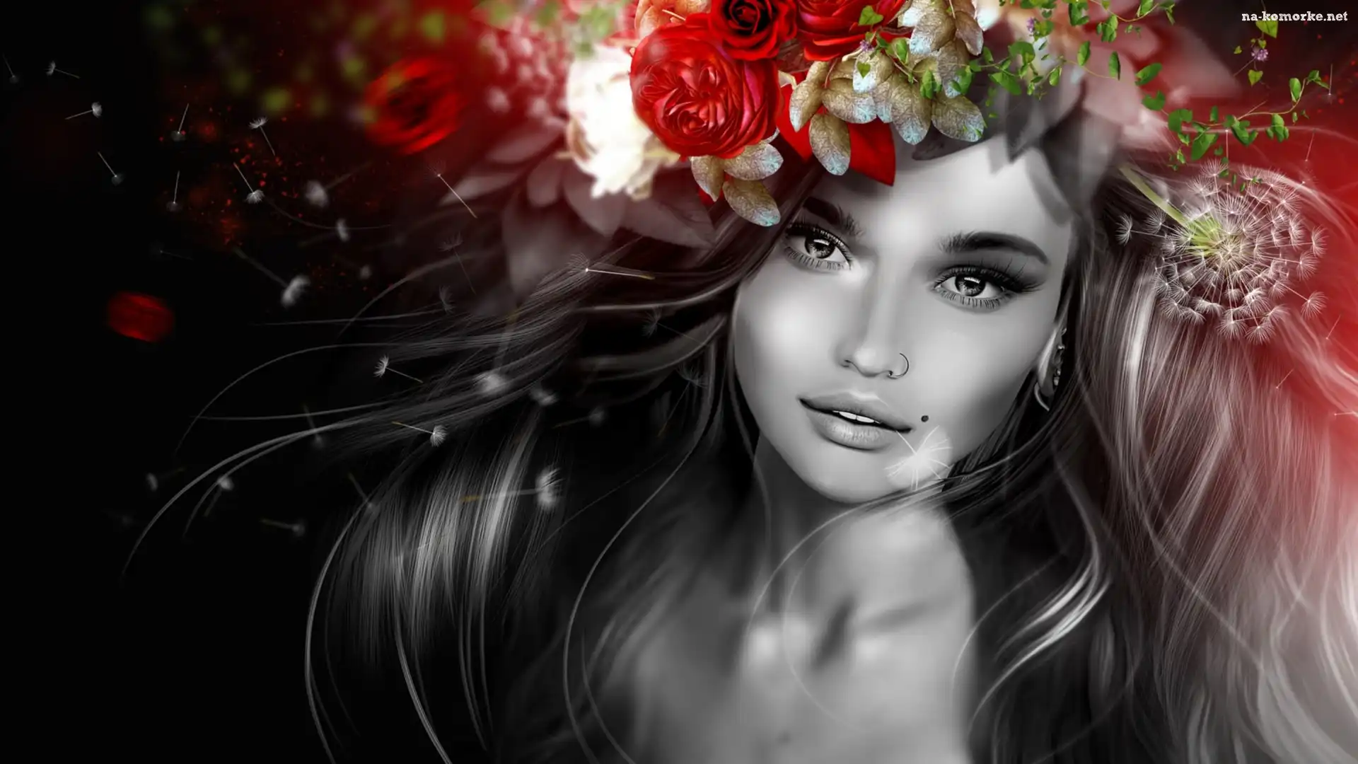 Dziewczyna, Włosy, Wianek, Rozwiane na Komórkę