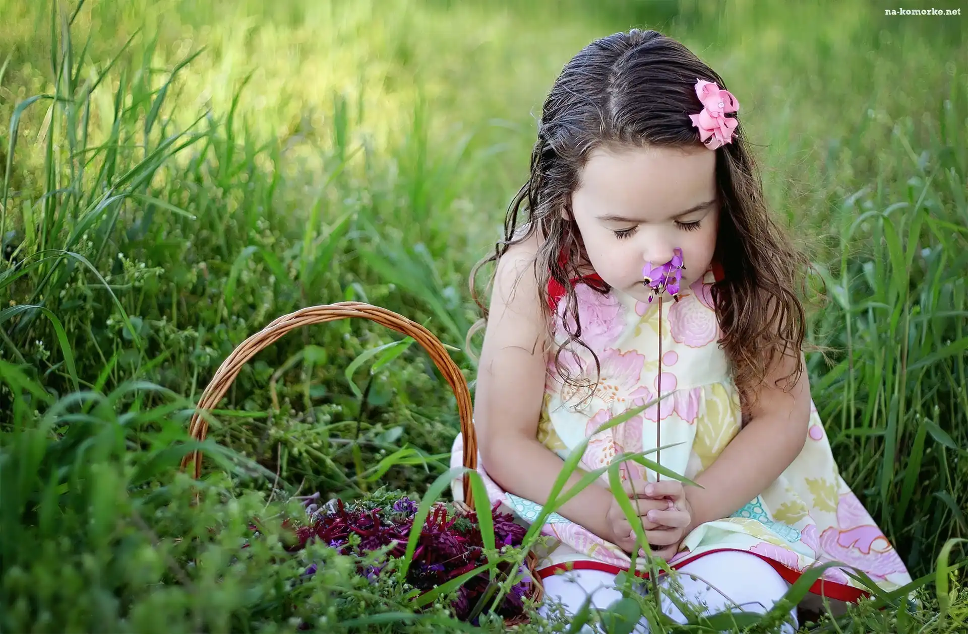 Dziewczynka, Koszyk, Łąka, Kwiatki na Komórkę