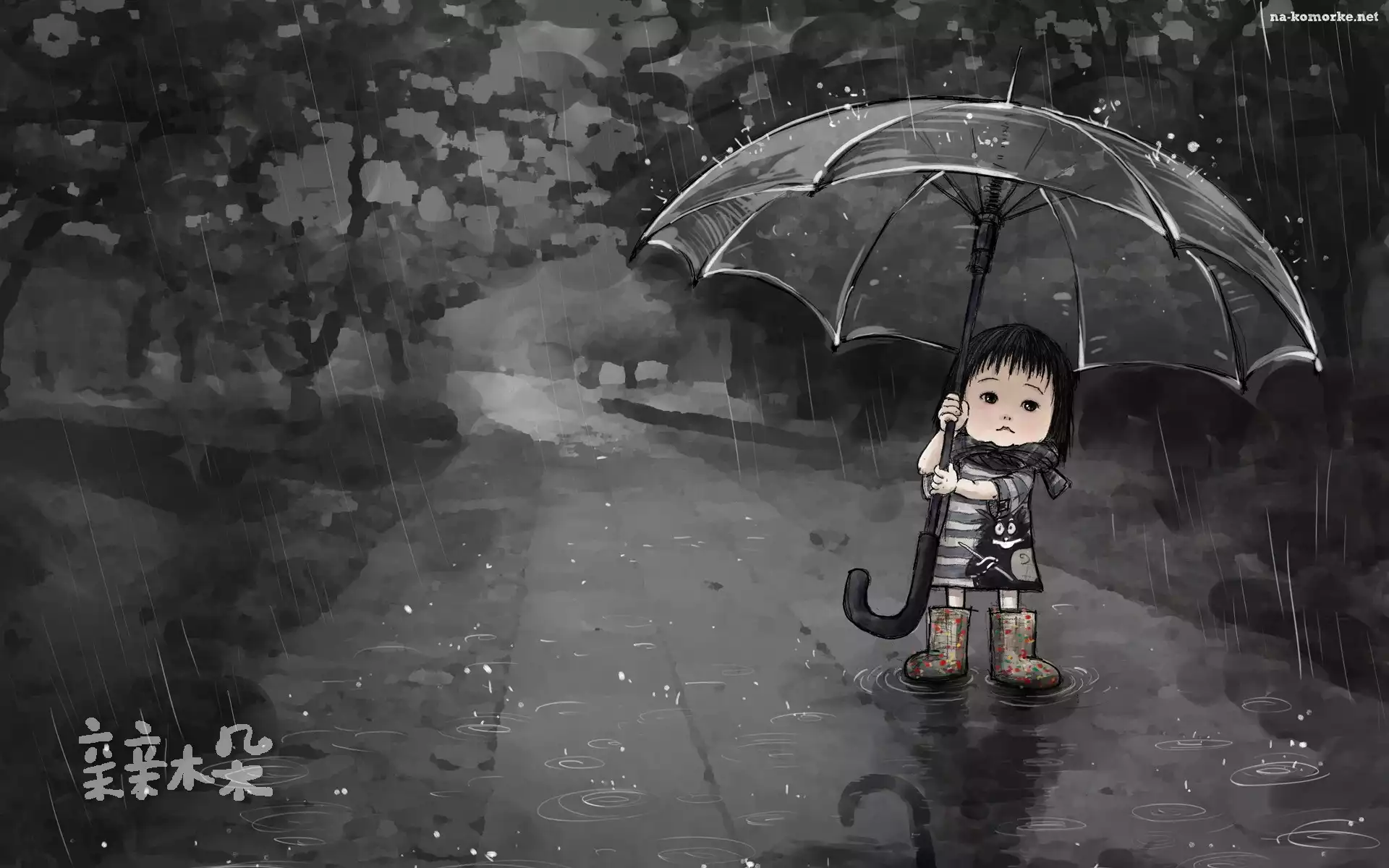 Deszcz, Dziewczynka, Parasol na Komórkę