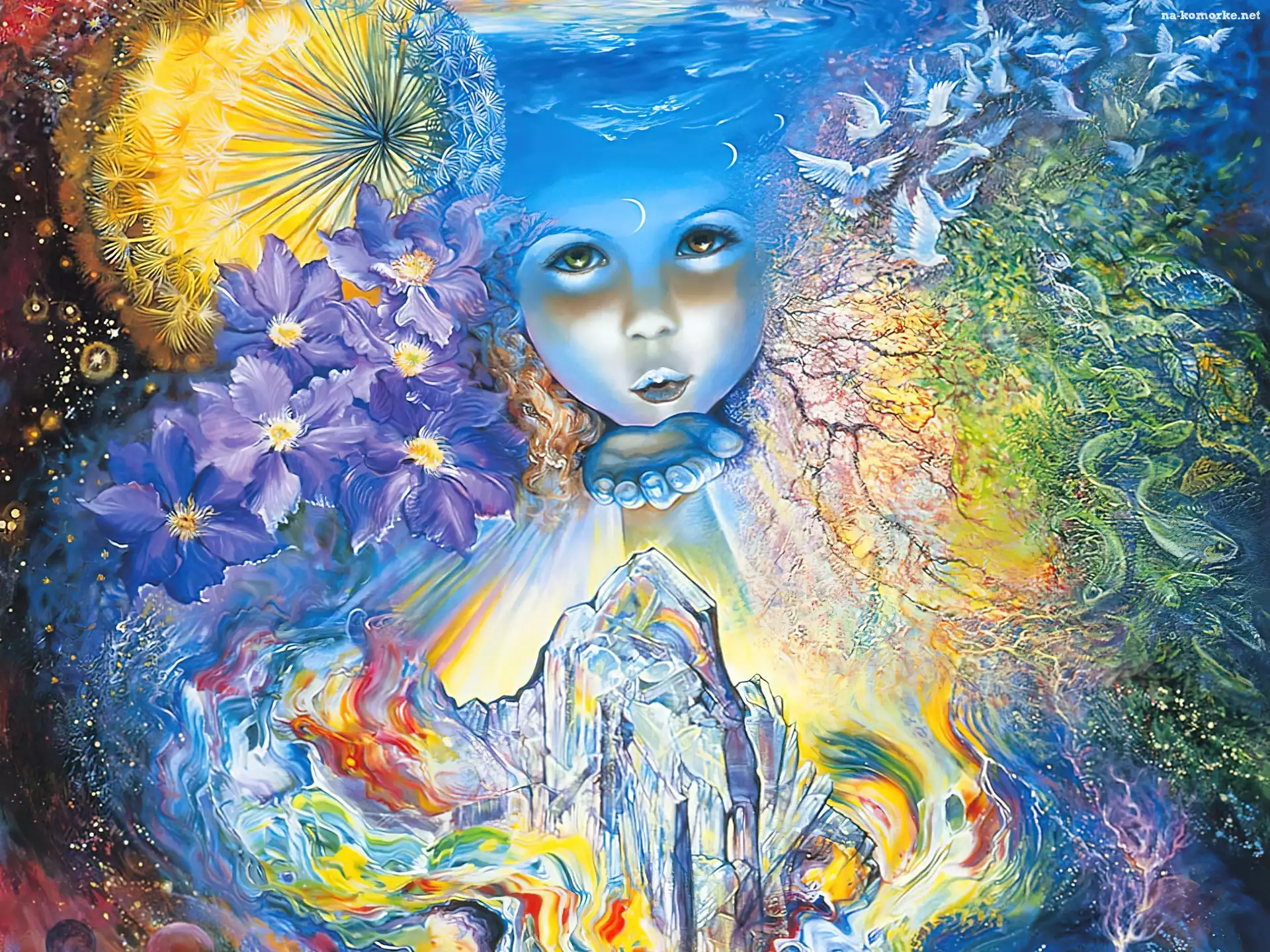 Josephine Wall, Dziewczynka, Dłoń, Buziak, Kwiaty na Komórkę