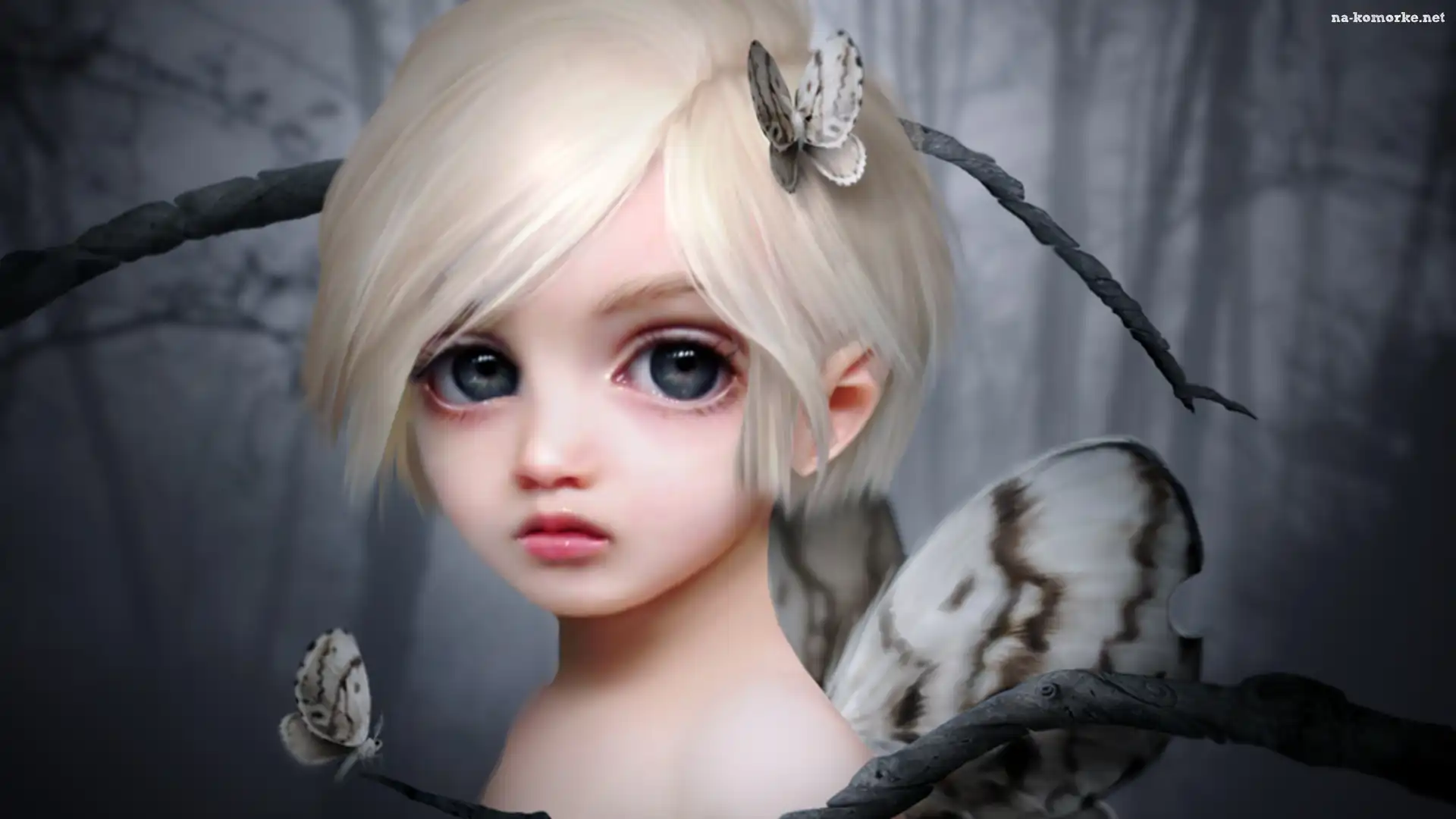 Dziewczynka, Motyle, Duże, Oczy na Komórkę
