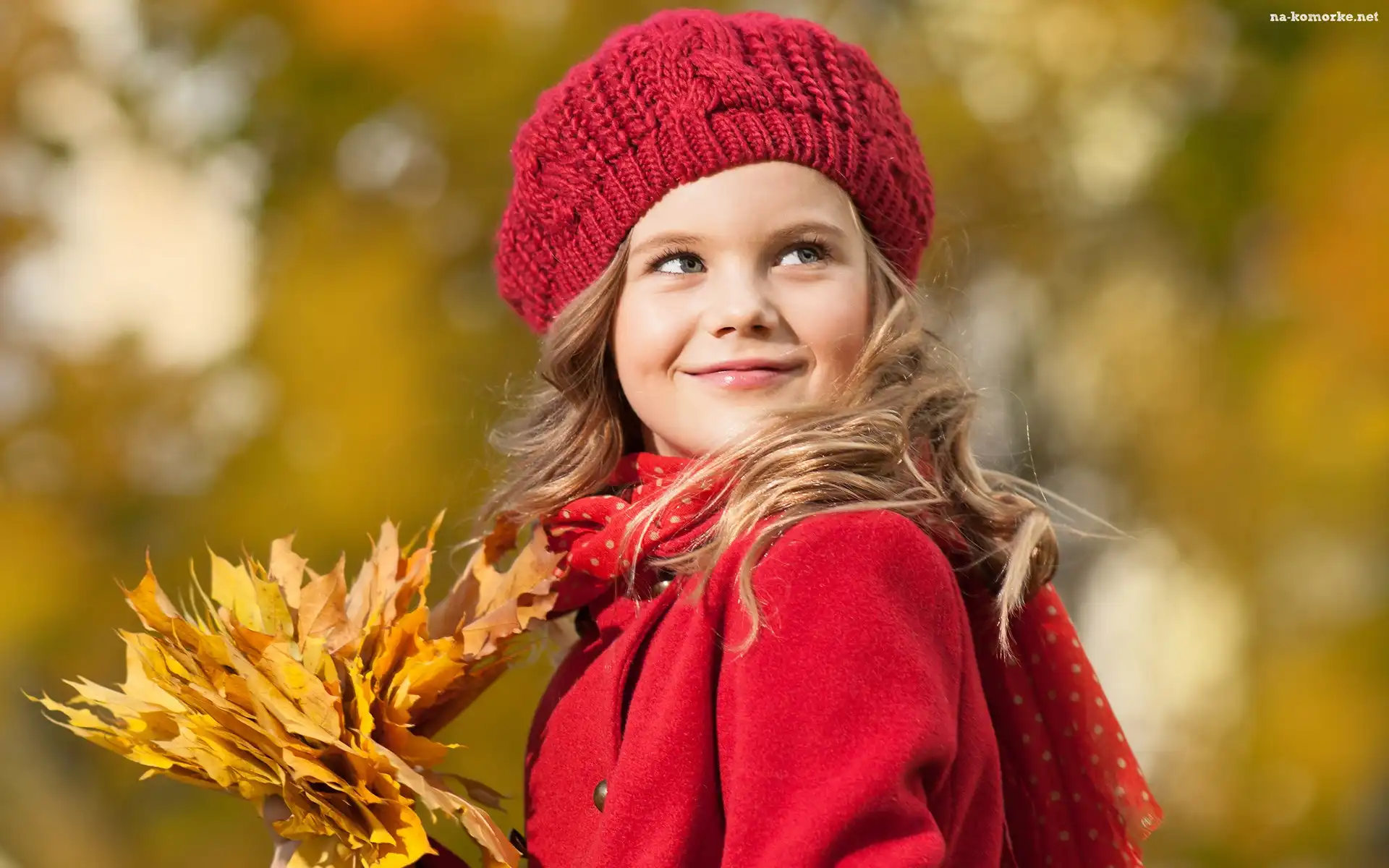 Ładna, Jesień, Dziewczynka, Liście na Komórkę