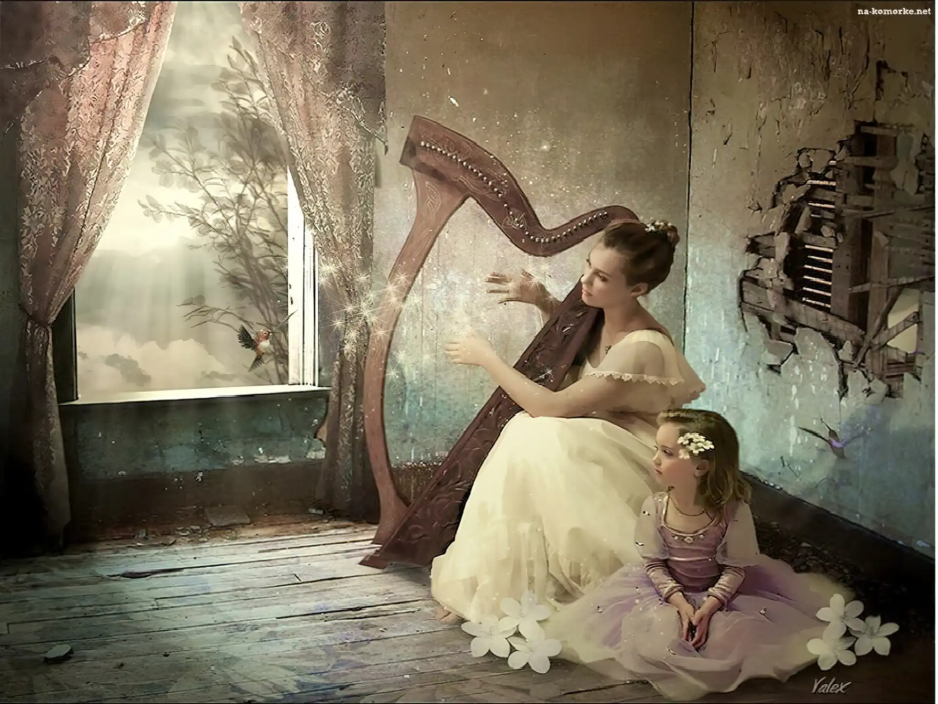 Kobieta, Dziewczynka, Harfa na Komórkę