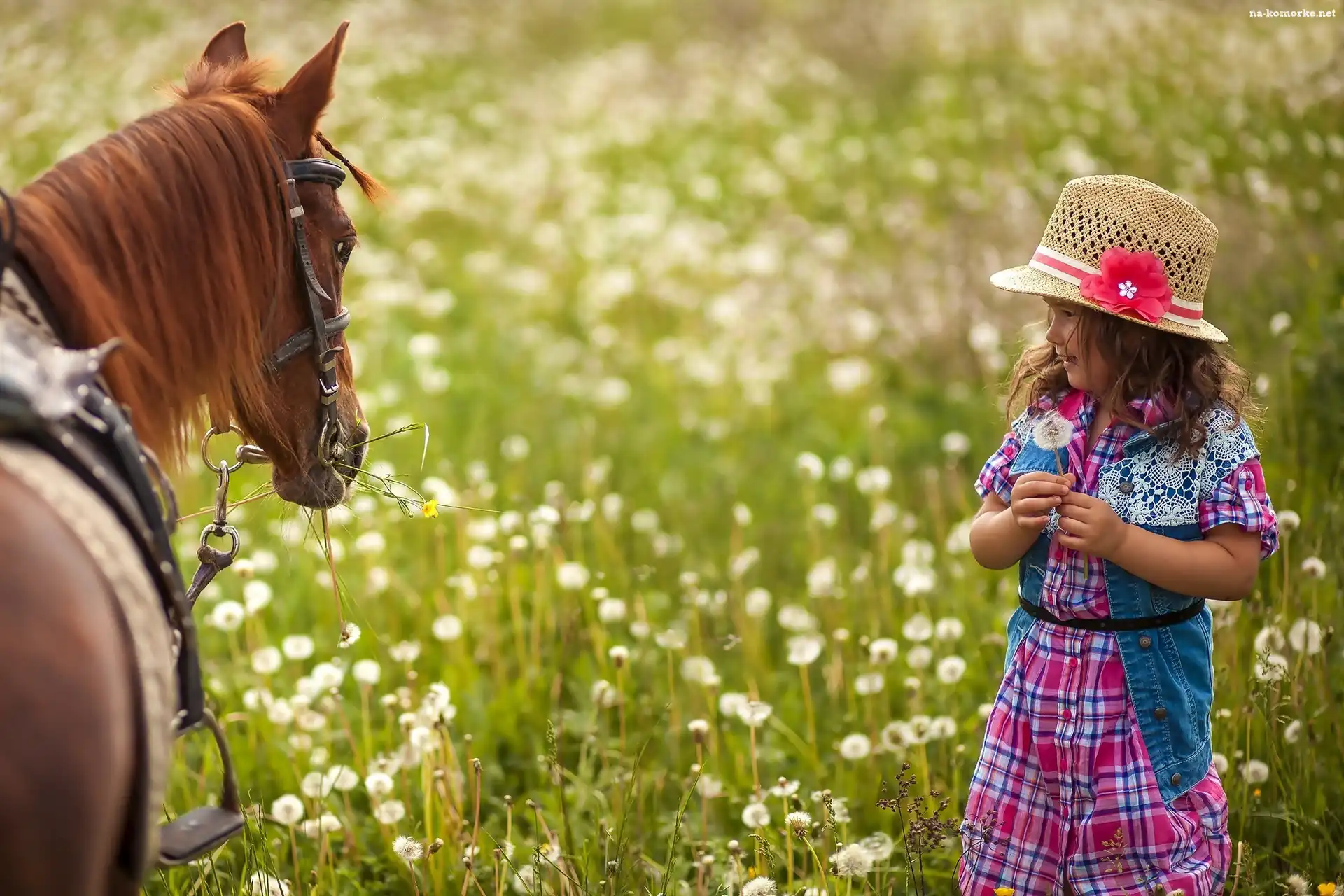 Dziewczynka, Kwiaty, Koń, Łąka na Komórkę