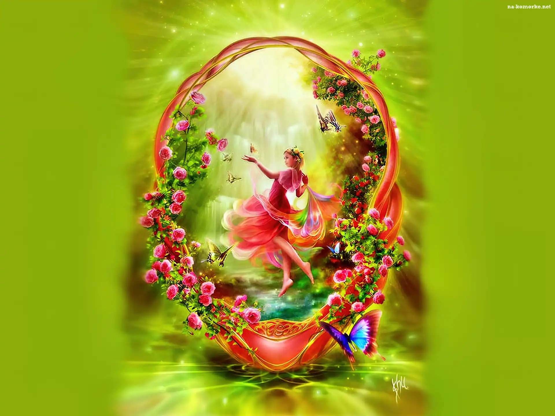 Dziewczynka, Motylki, Kwiaty, Promienie na Komórkę