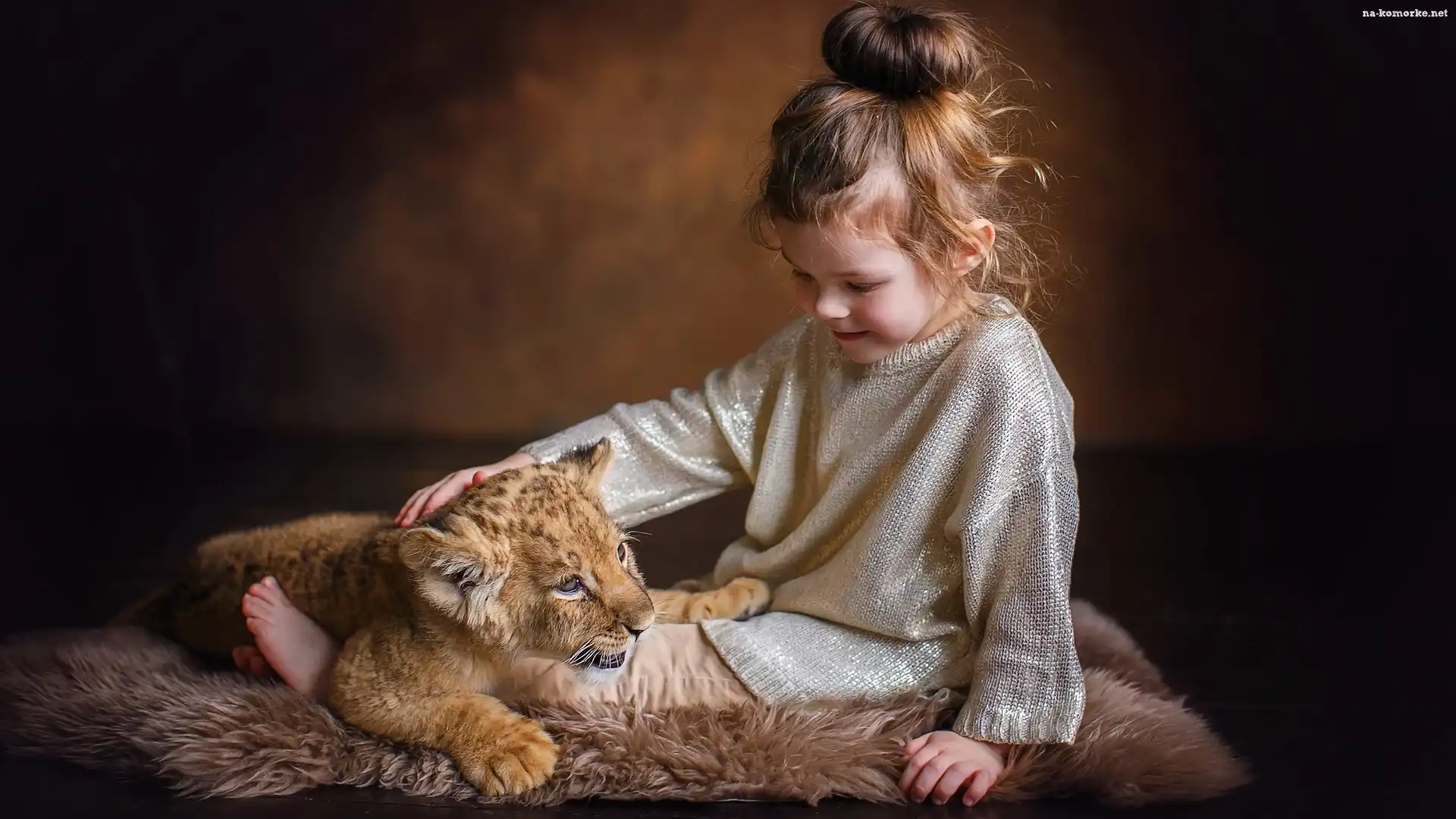 Dziewczynka, Lwiątko, Młody, Lew na Komórkę
