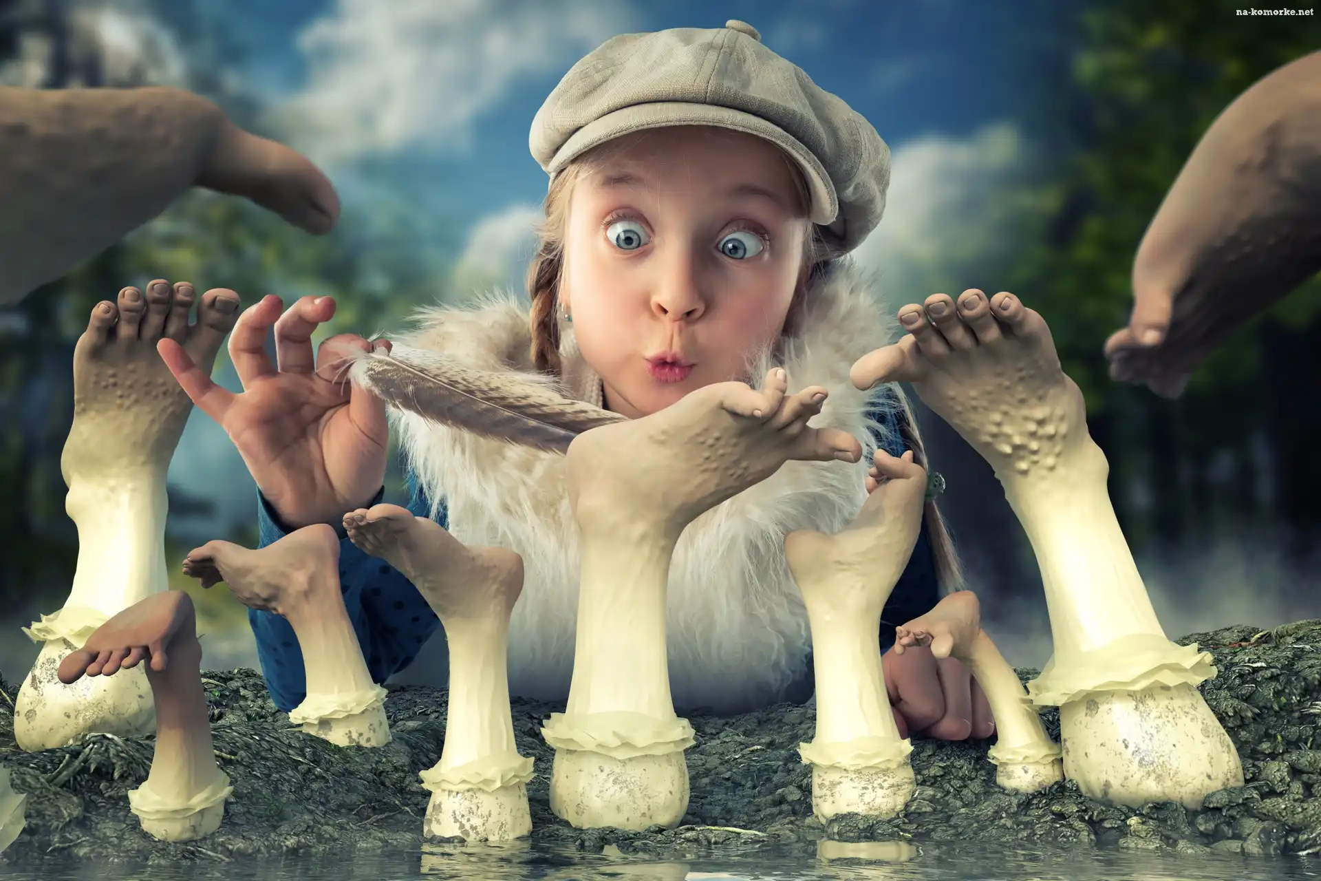 Dziewczynka, Śmieszne, Nogi, Piórko na Komórkę