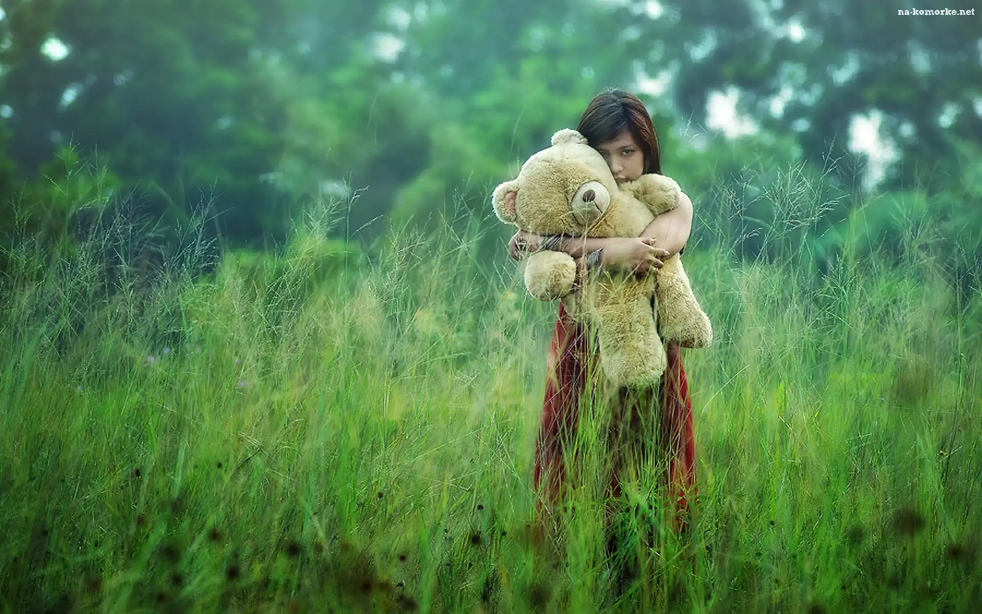 Dziewczynka, Łąka, Pluszowy, Miś na Komórkę