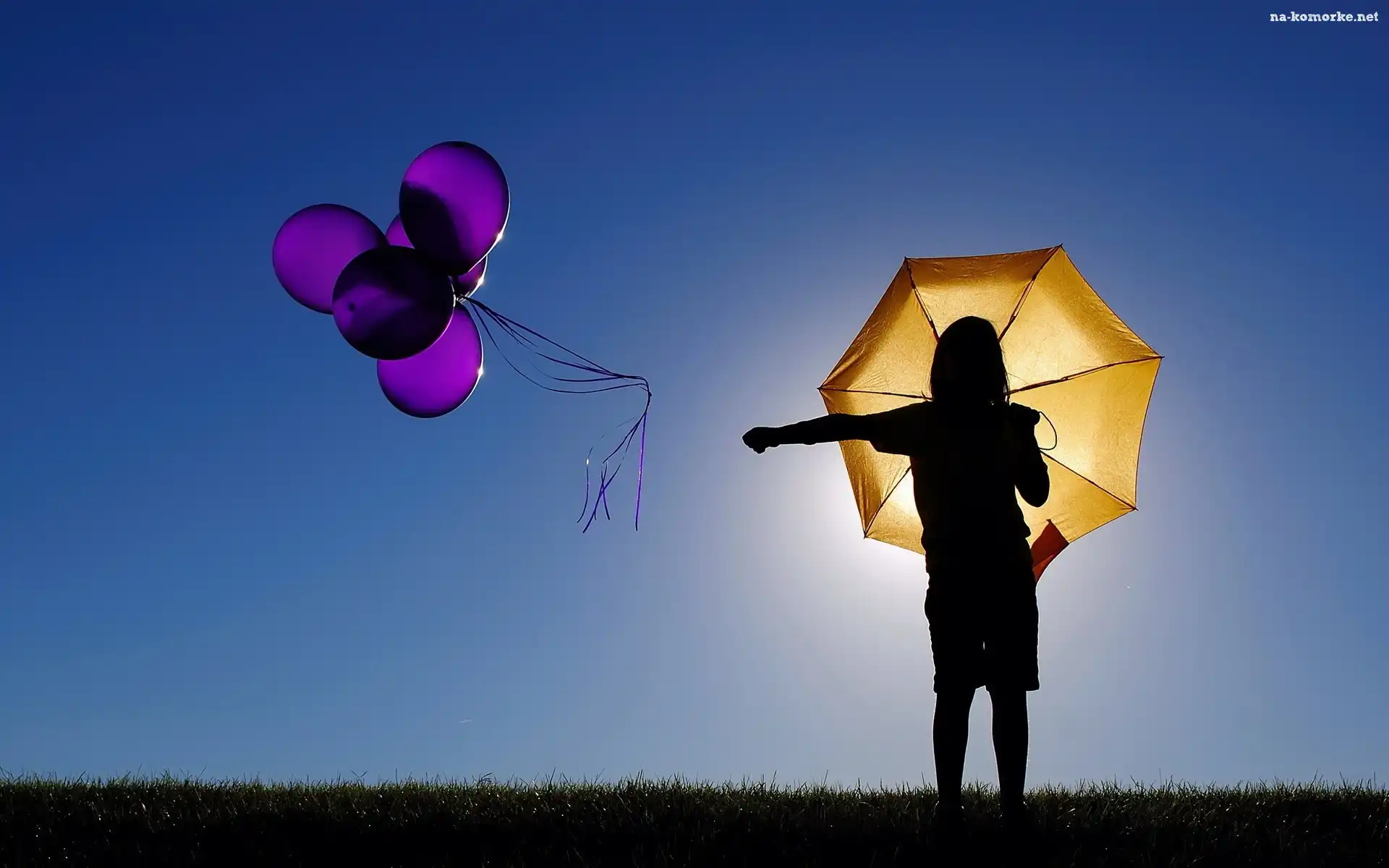 Dziewczynka, Parasolka, Różowe, Baloniki na Komórkę
