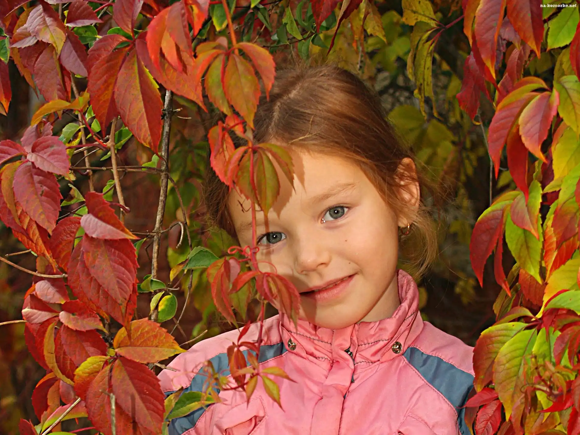 Dziewczynka, Liście, Uśmiech, Jesień na Komórkę