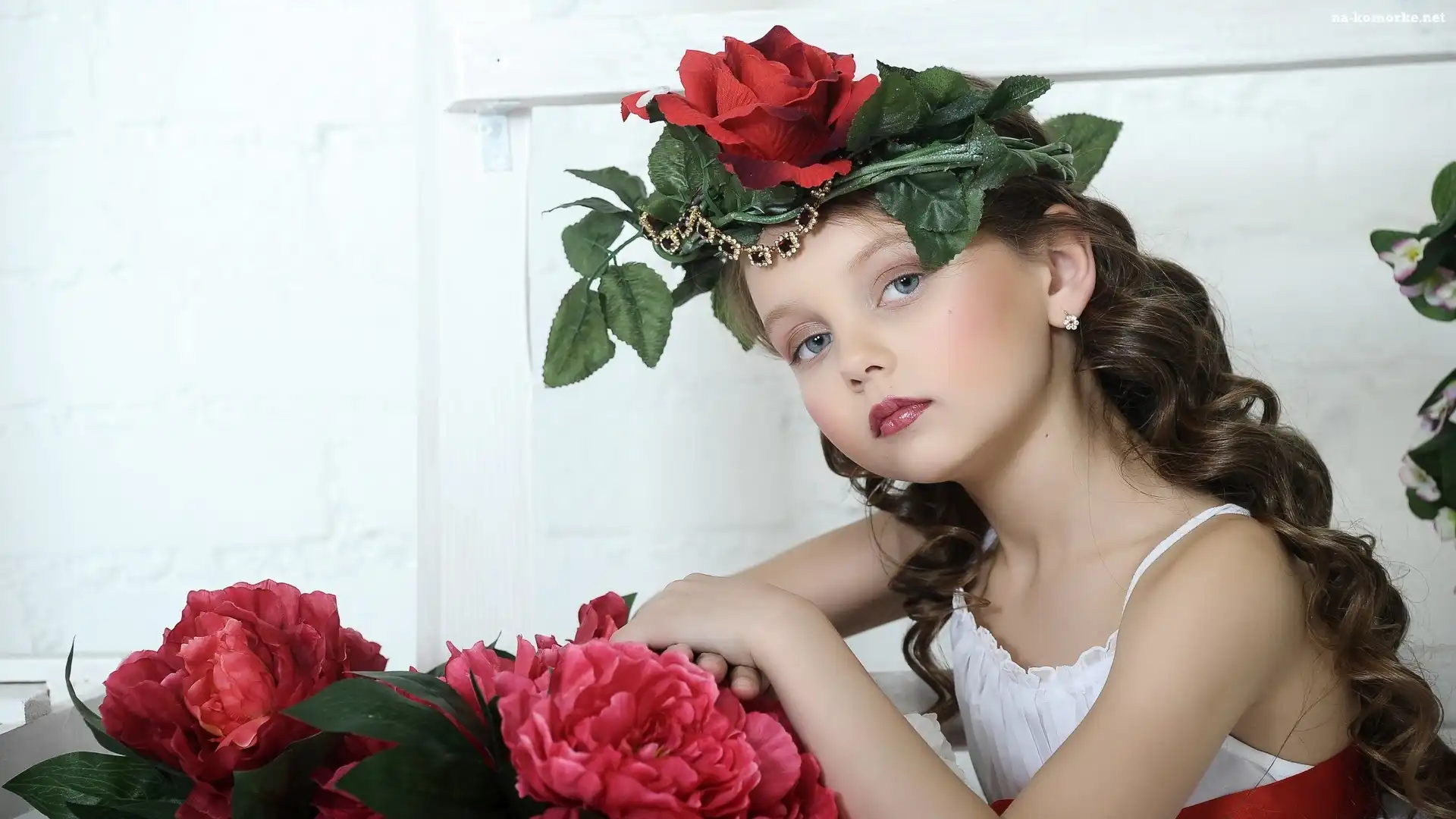 Dziewczynka, Róża, Wianek, Czerwona na Komórkę