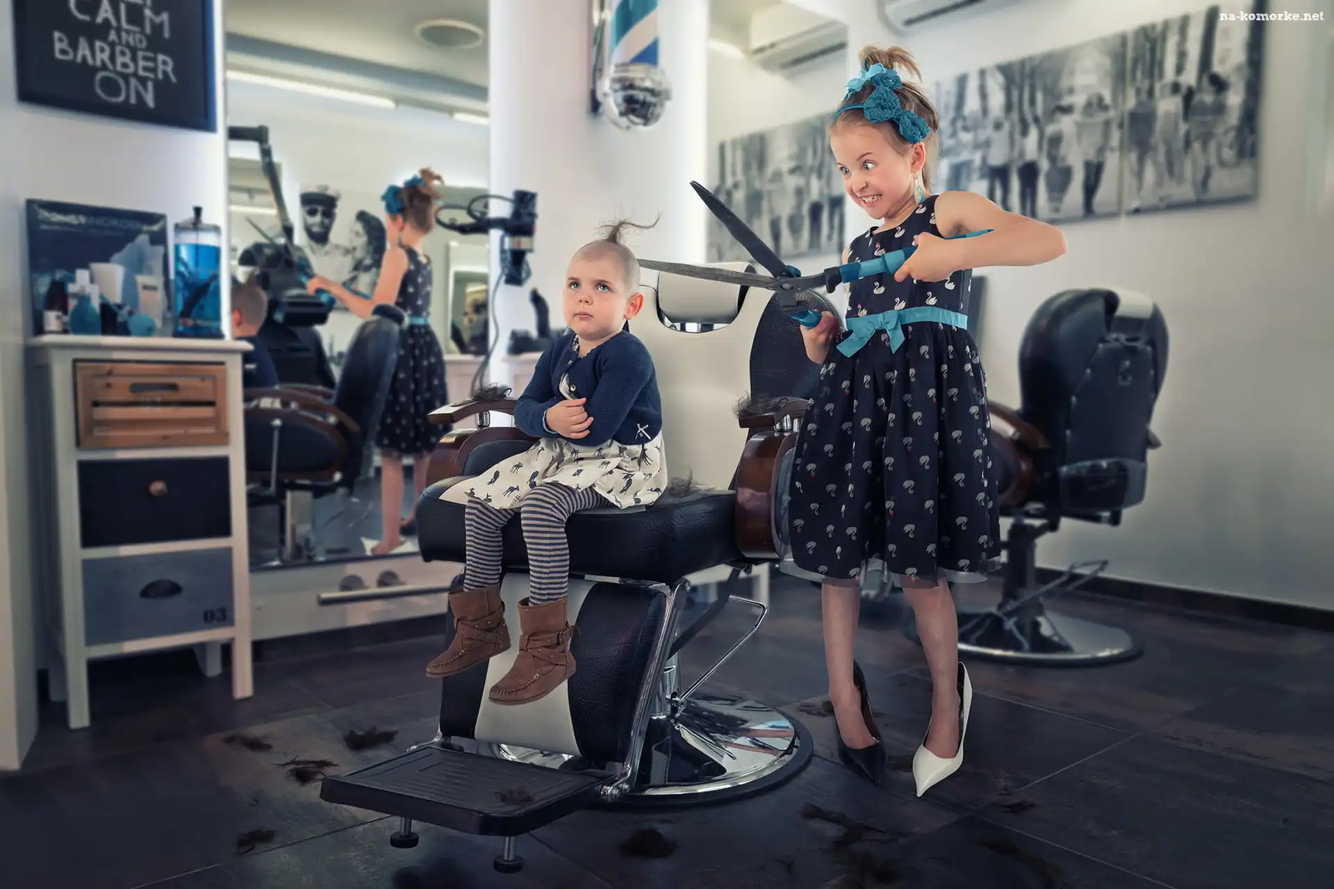 Dziewczynki, Śmieszne, Zakład fryzjerski, Nożyczki na Komórkę