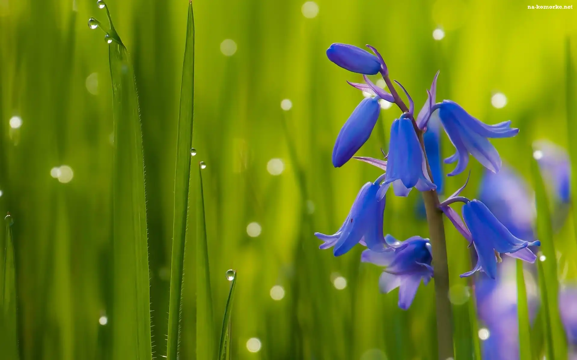 Dzwonek, Makro, Krople, Trawa na Komórkę