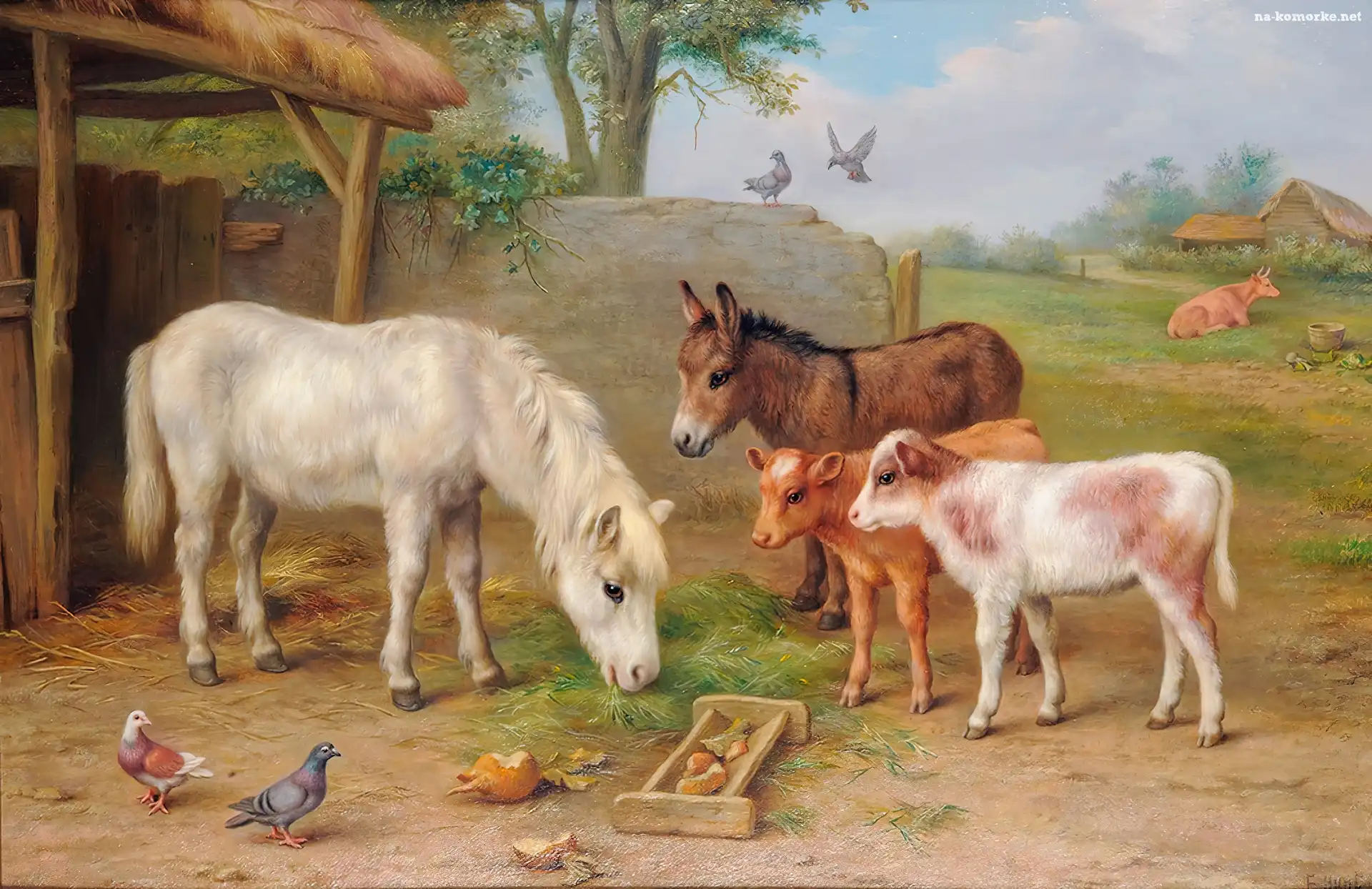 Edgar Hunt, Konik, Cielęta, Osioł, Gospodarstwo na Komórkę