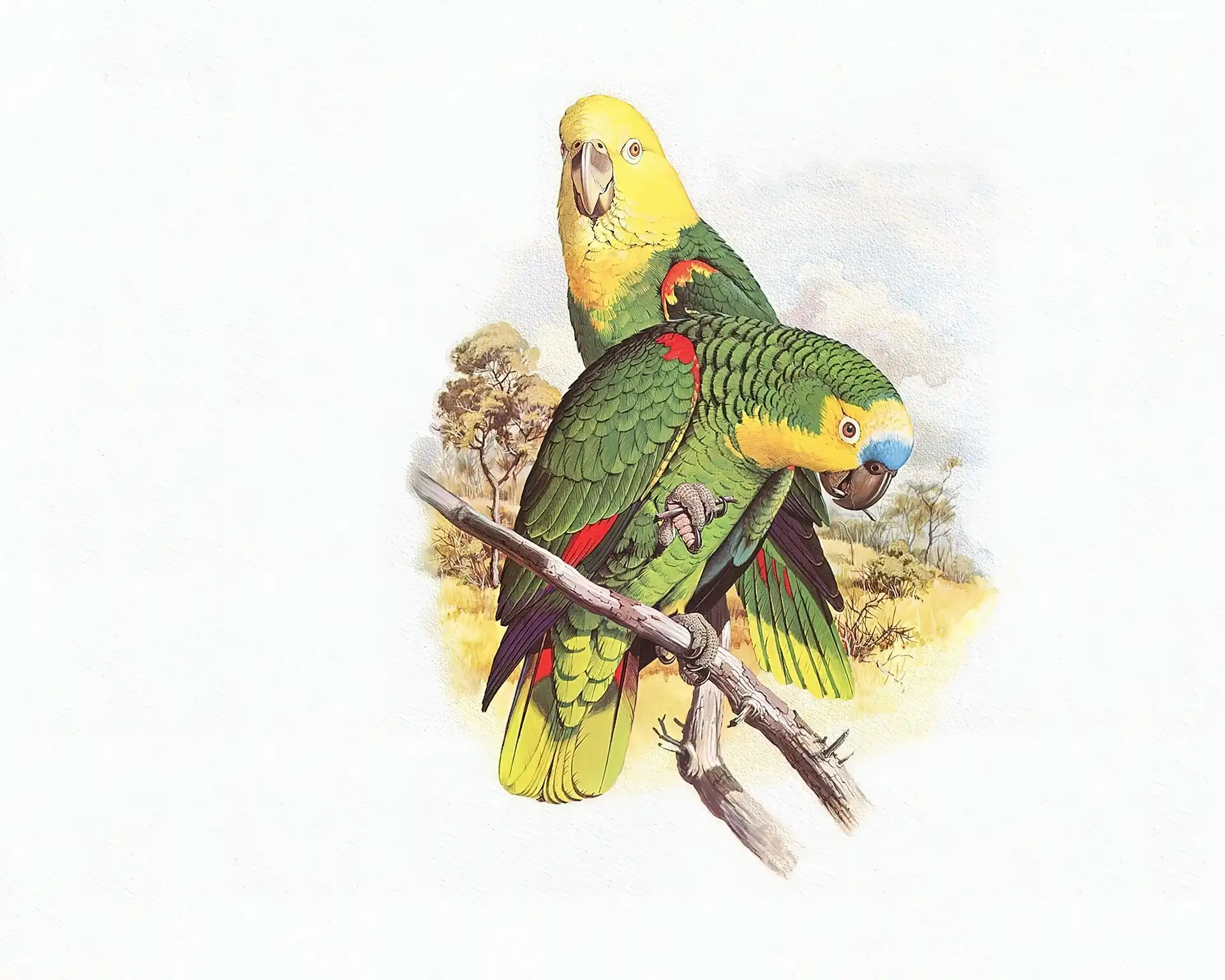Edward Lear, Zielone, Papugi, Żółte, Głowy na Komórkę