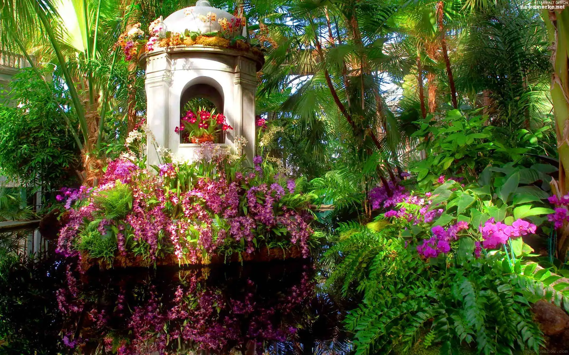Egzotyczny, Odbicie, Ogród, Pawilon na Komórkę