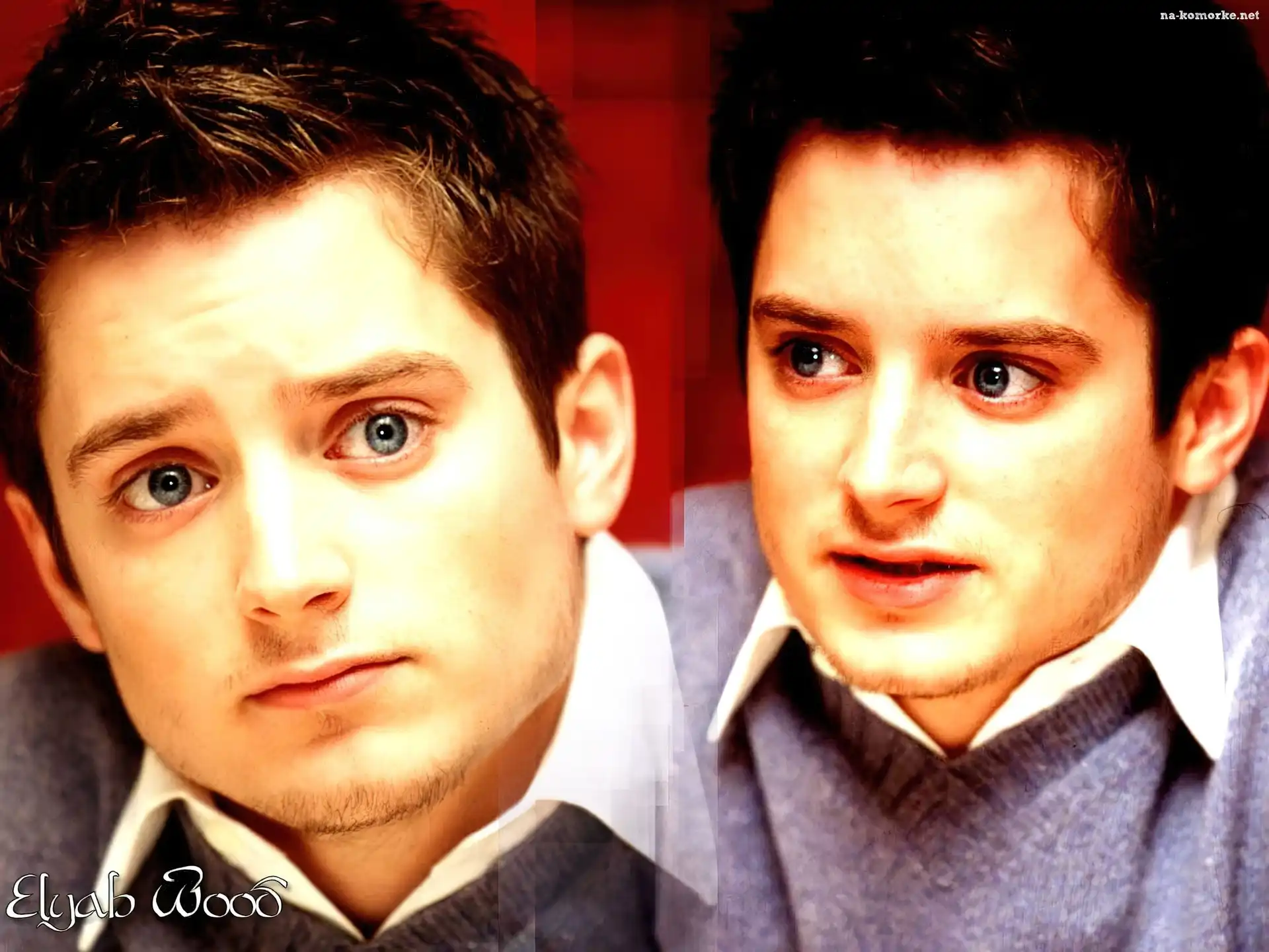 Elijah Wood, niebieskie oczy, bródka na Komórkę