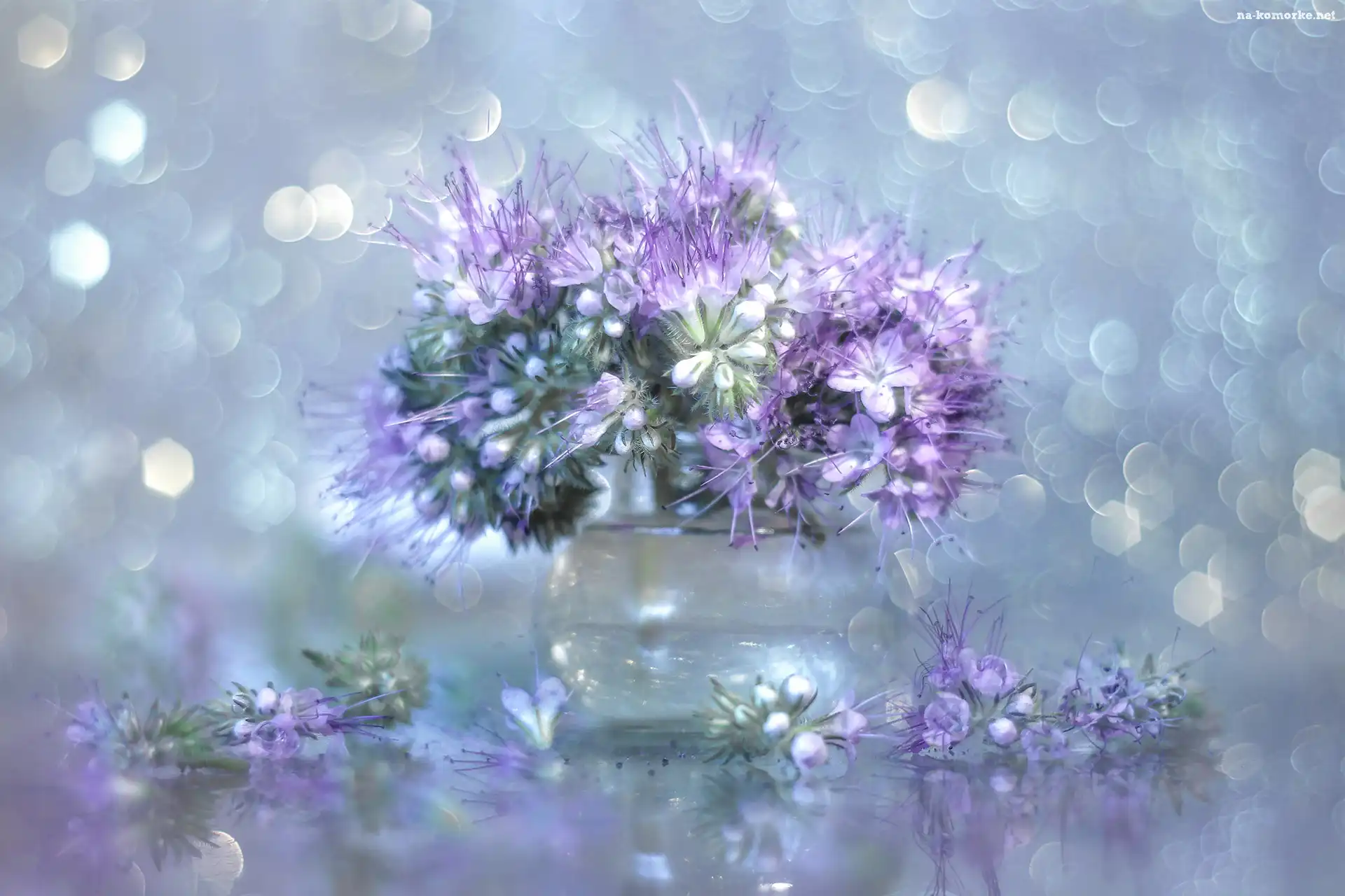 Facelia błękitna, Bokeh, Kwiaty, Wazonik na Komórkę