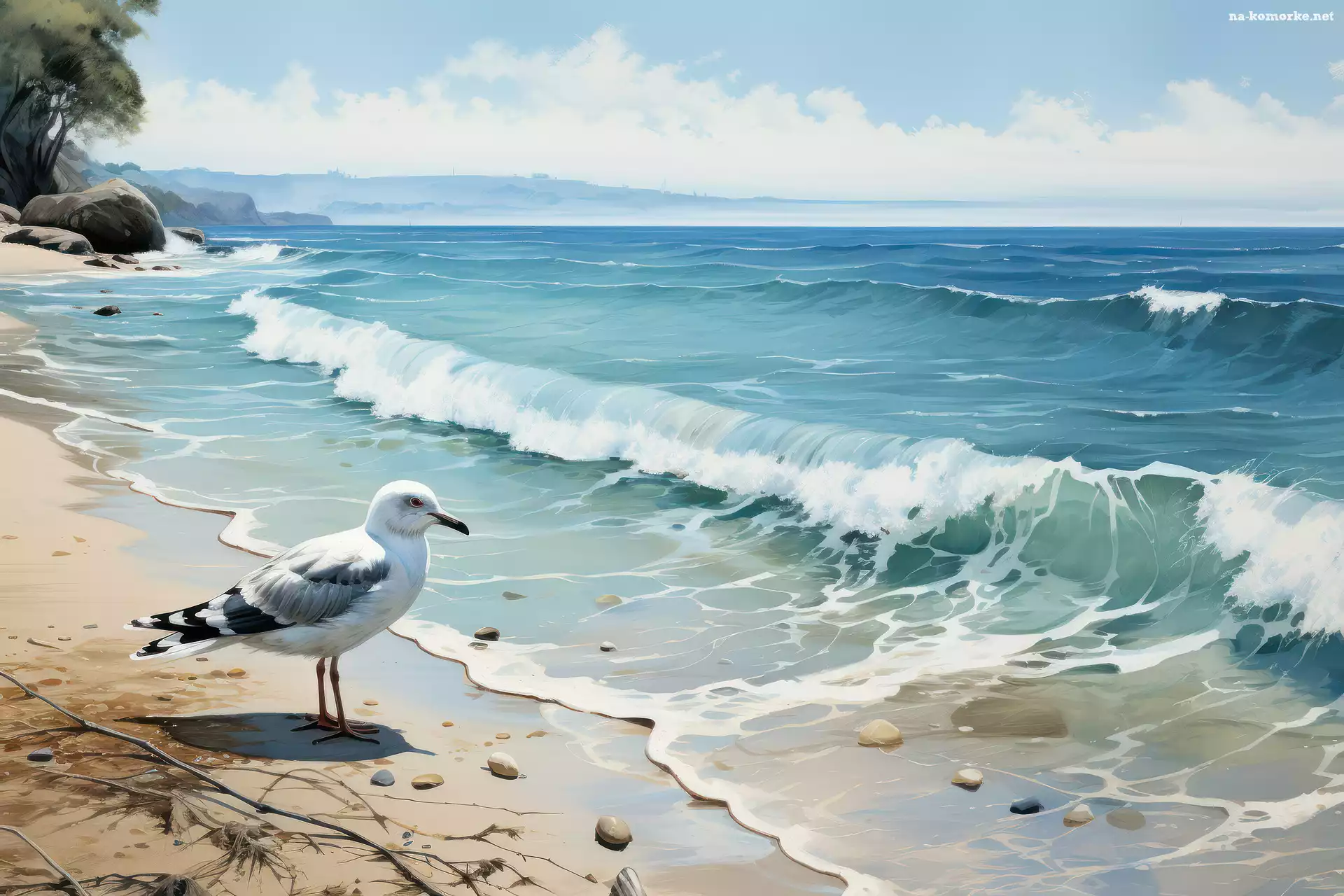 Morze, Fale, Mewa, Plaża, Grafika na Komórkę