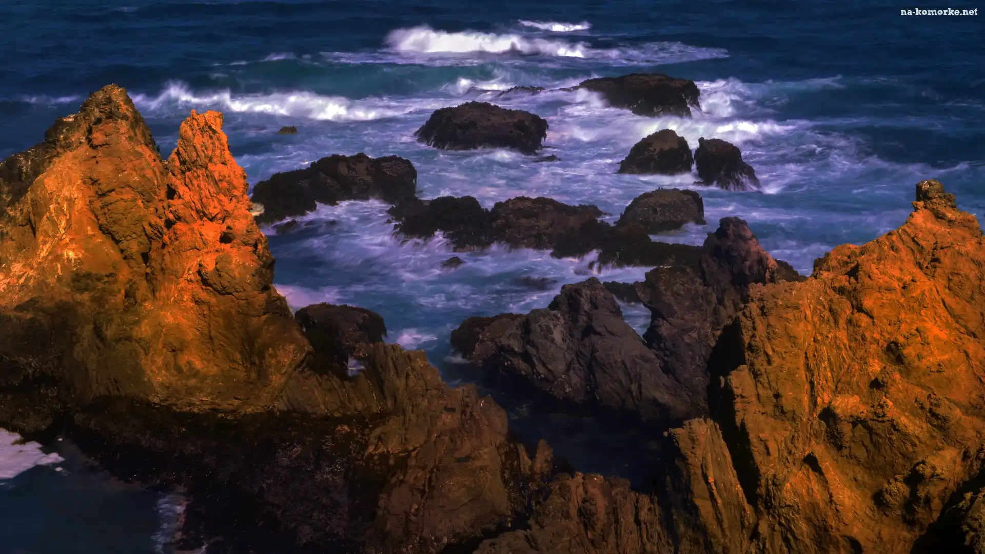 Fale, Rozświetlone, Słońcem, Skały, Morze na Komórkę
