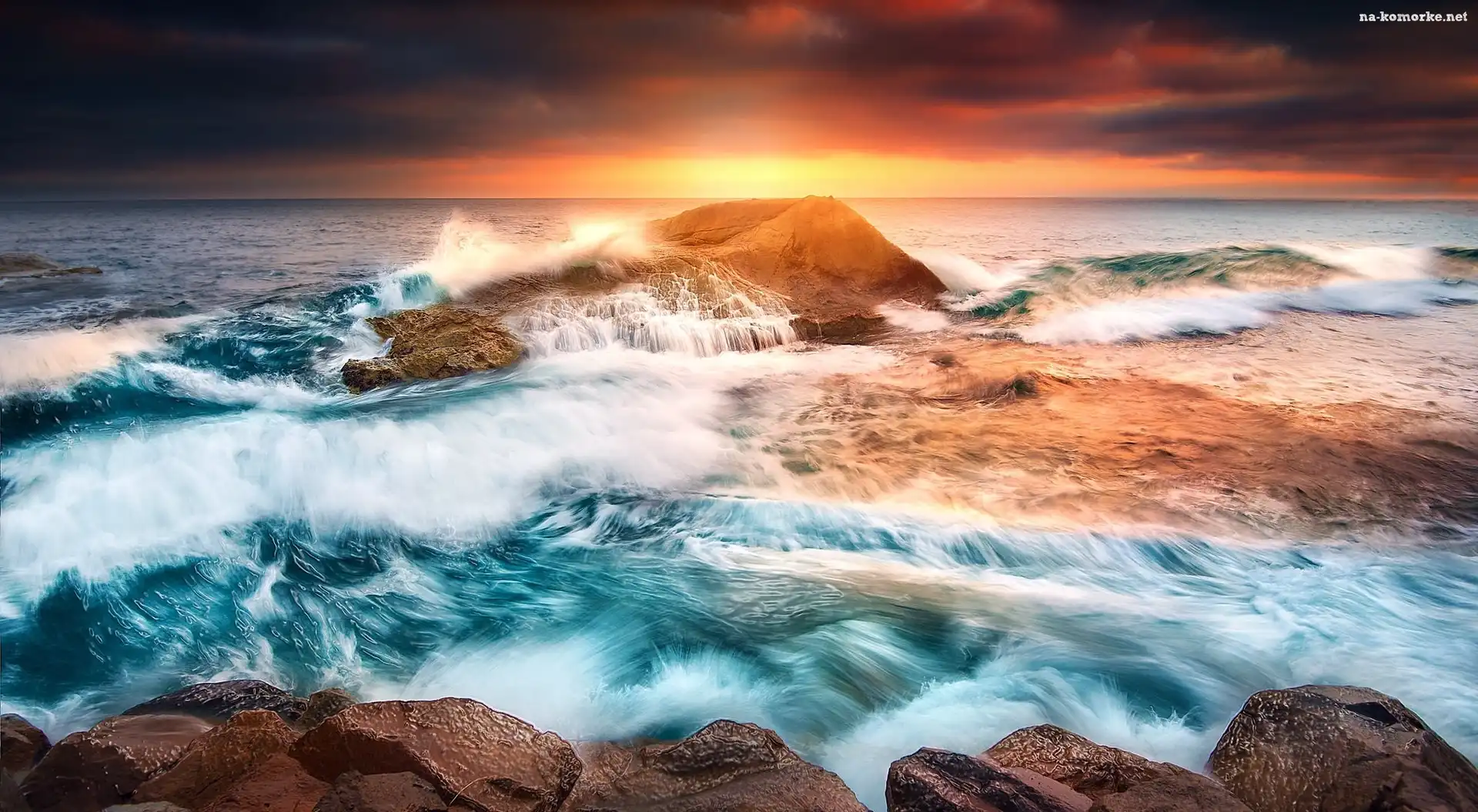 Stany Zjednoczone, Fale, Zachód słońca, Stan Kalifornia, Laguna Beach, Morze, Skały na Komórkę |