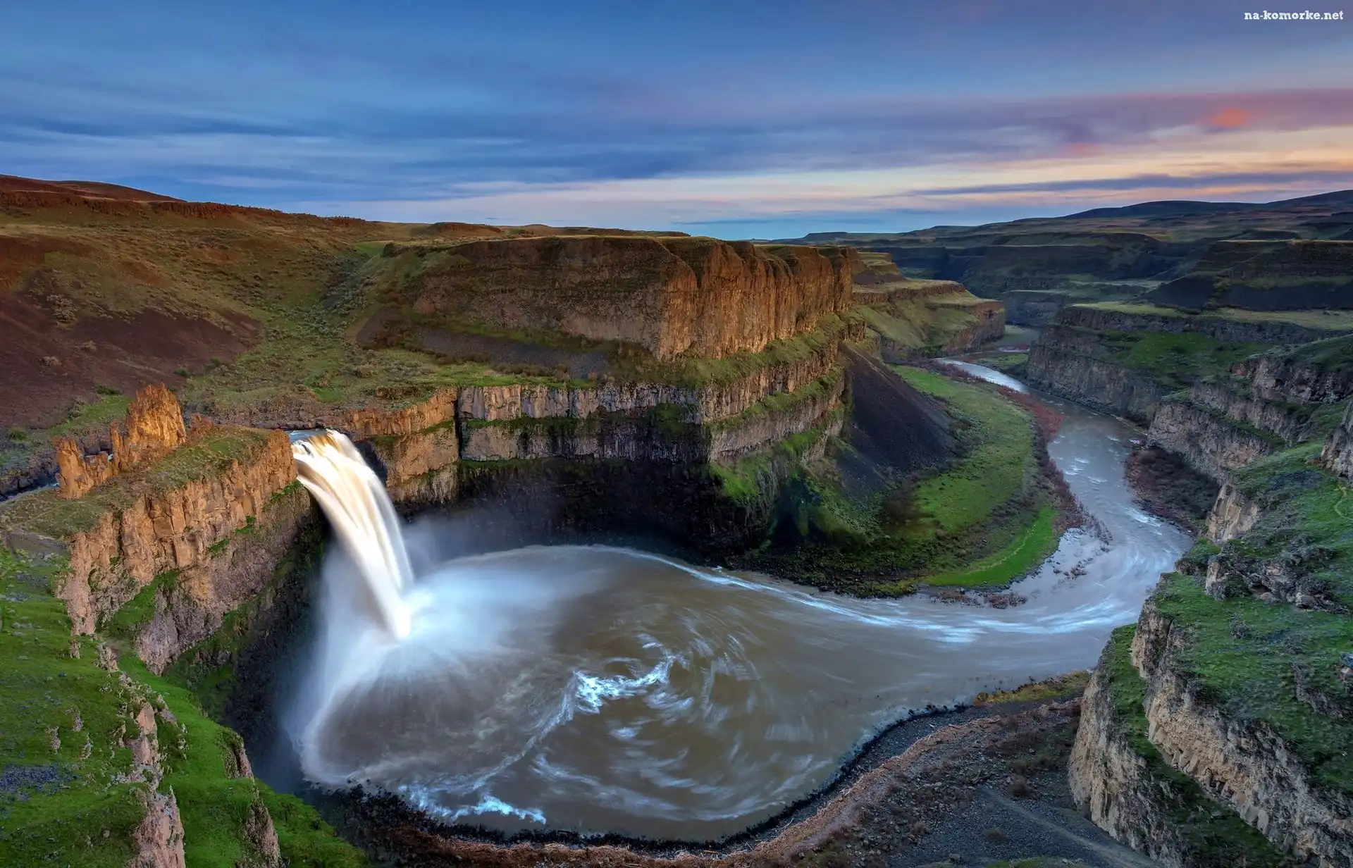 Rzeka, Stany Zjednoczone, Stan Waszyngton, Skały, Wodospad Palouse Falls na Komórkę