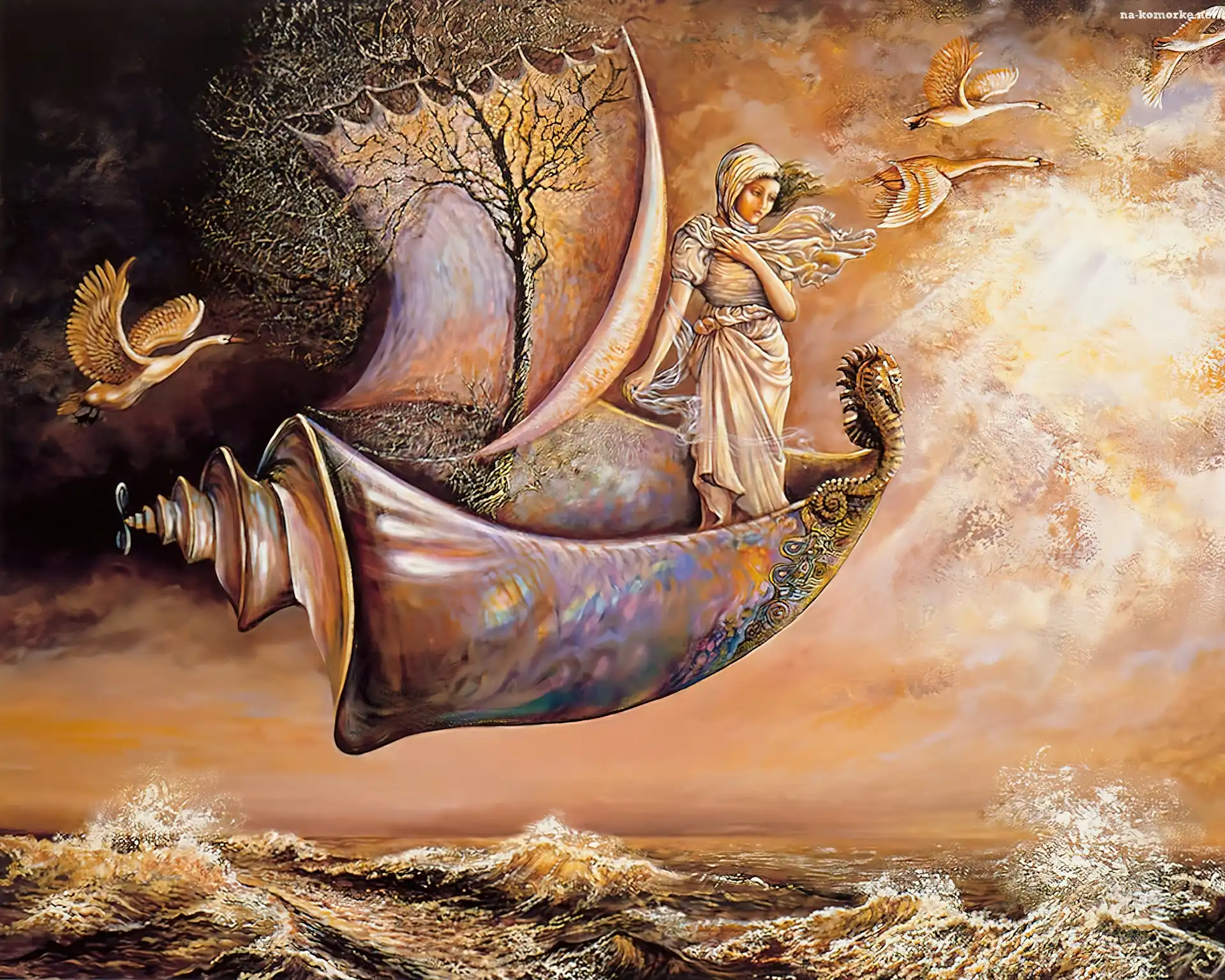 Fantastyka, Kobieta, Muszla, Ptaki, Reprodukcja na Komórkę