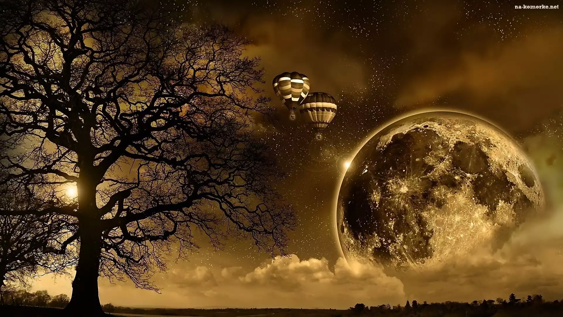 Fantasy, Gwiazdy, Księżyc, Balony, Drzewo na Komórkę