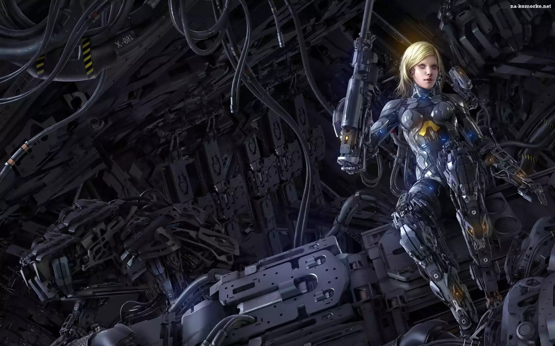 Fantasy, Cyborg, Dziewczyna, Rika, Broń, Postać na Komórkę