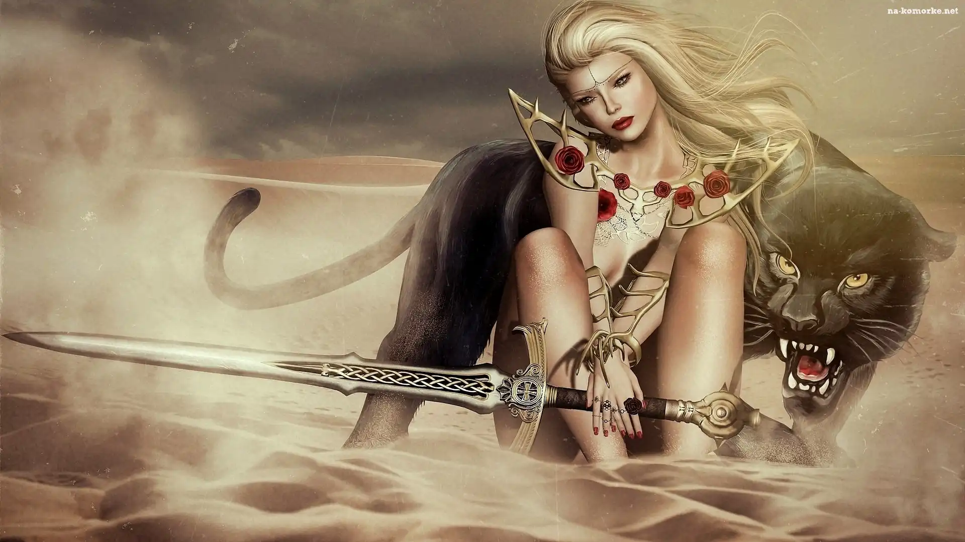 Fantasy, Pantera, Dziewczyna, Wojowniczka na Komórkę