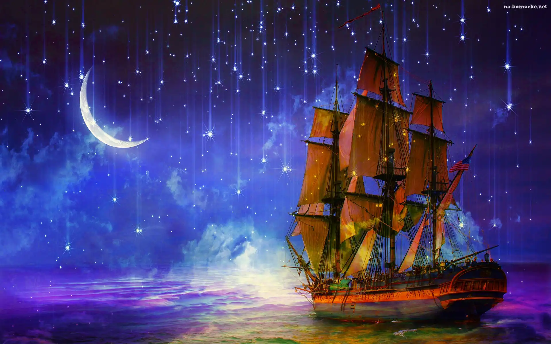 Fantasy, Żaglowiec, Noc, Gwiazdy na Komórkę