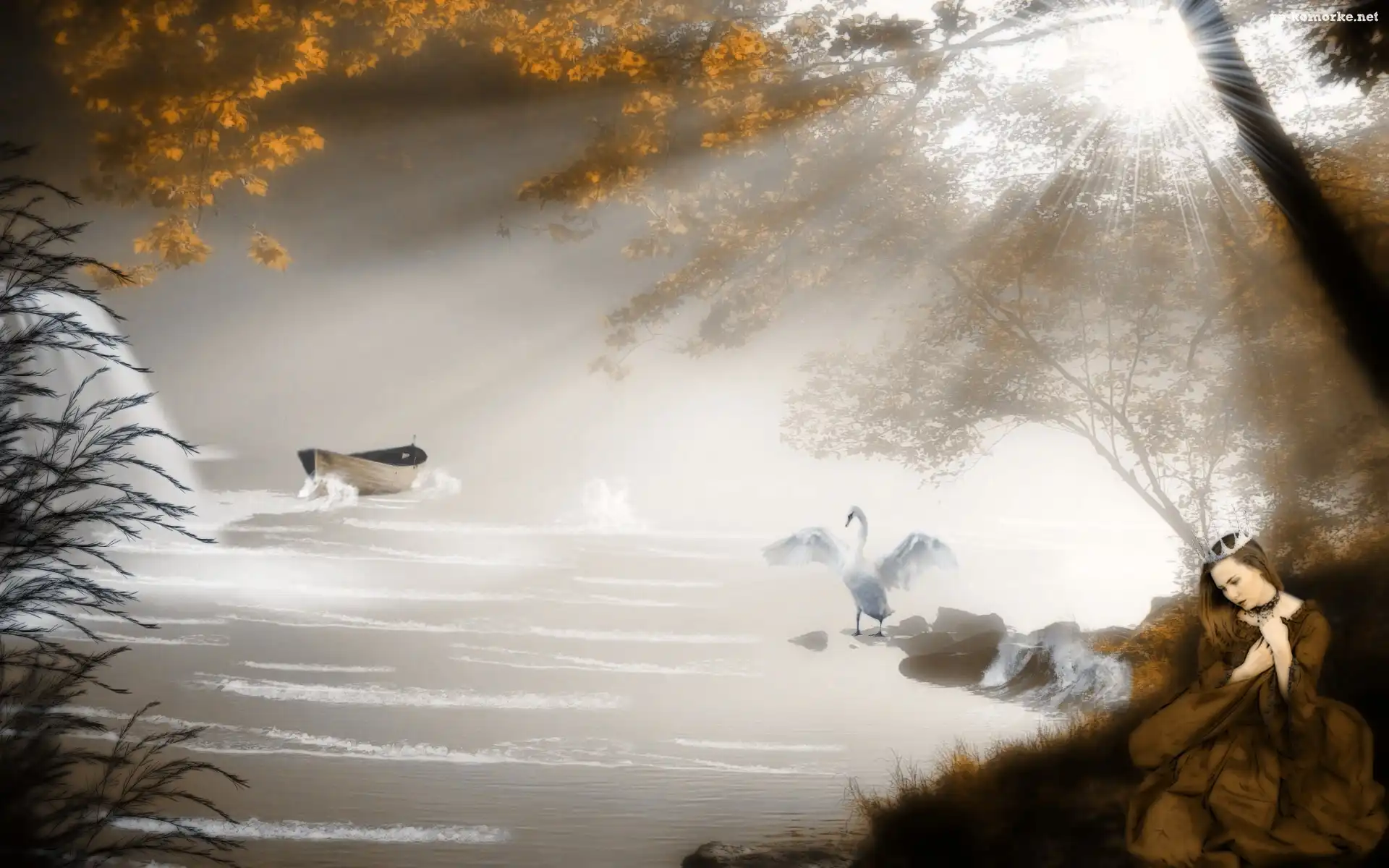 Fantasy, Jezioro, Kobieta, Łódka, Jesień na Komórkę