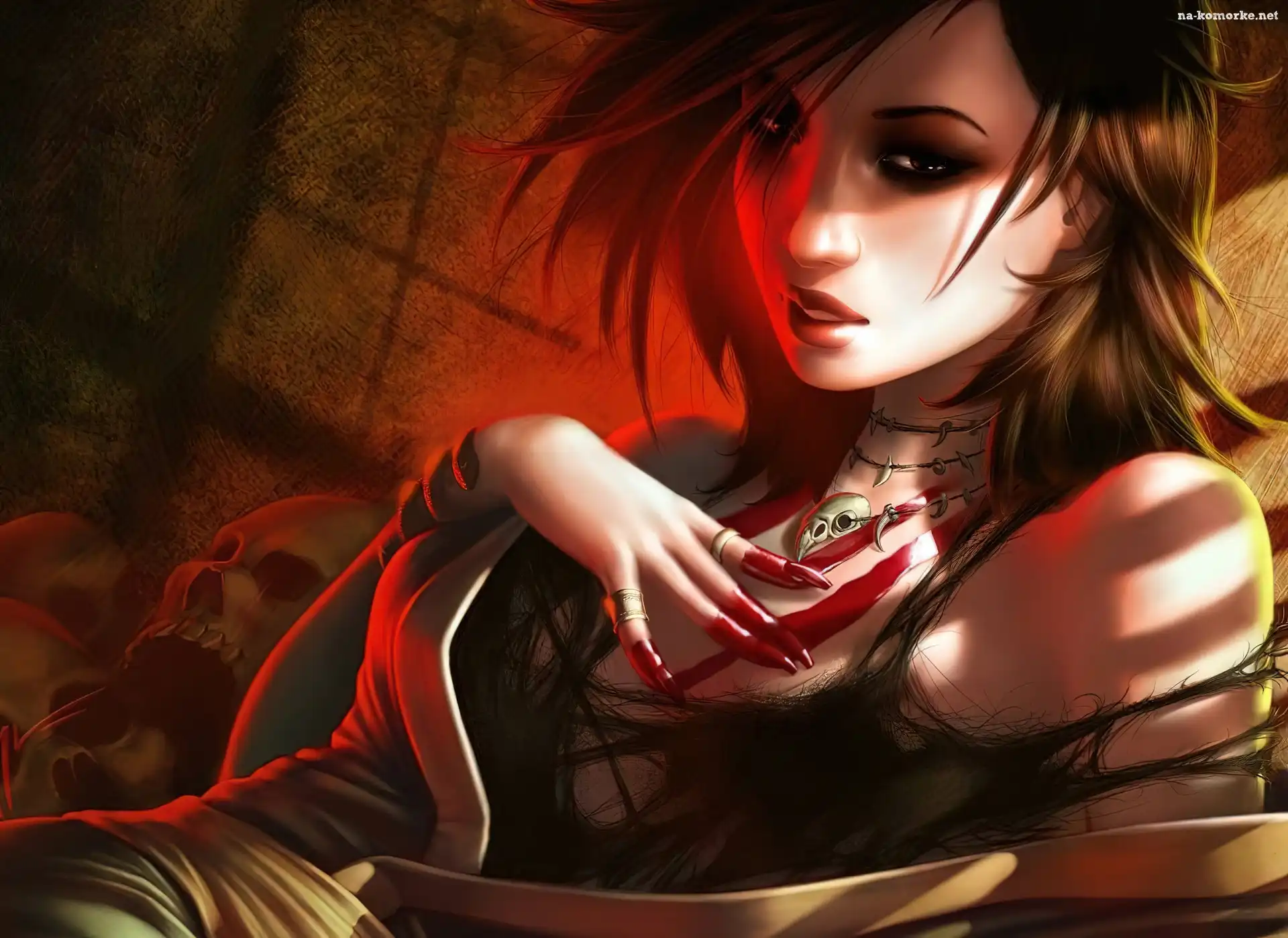 Fantasy, Kobieta, Czerwone, Paznokcie, Krew na Komórkę