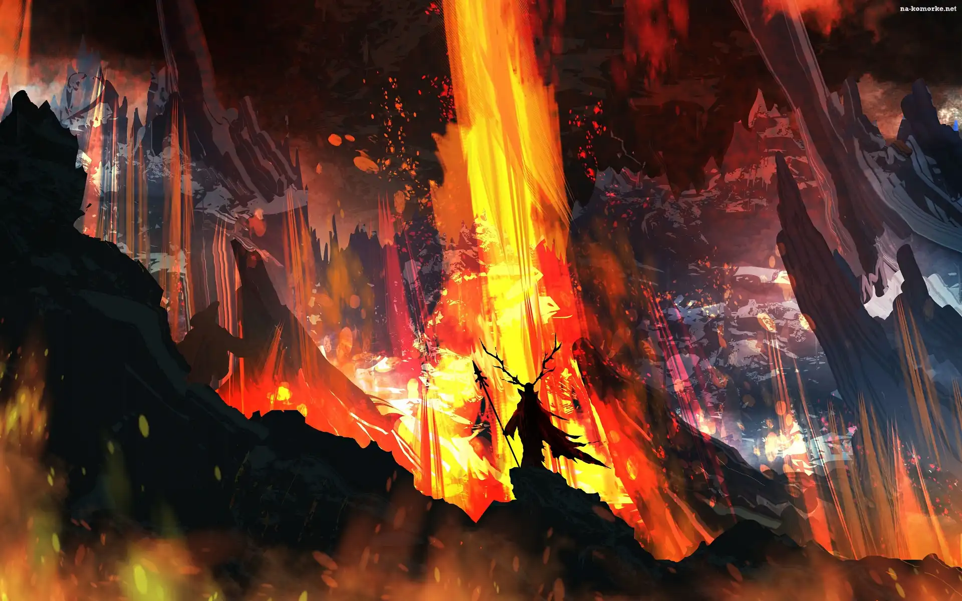 Fantasy, Góry, Postać, Lawa na Komórkę