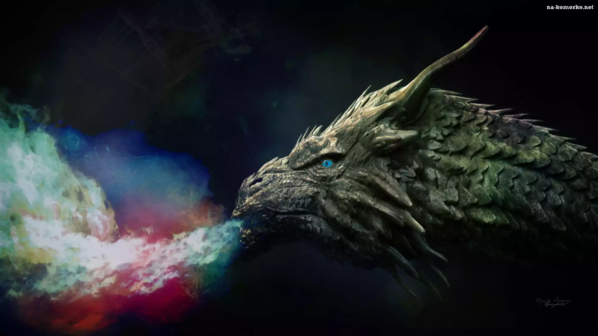 Fantasy, Ogień, Dym, Rogi, Smok na Komórkę