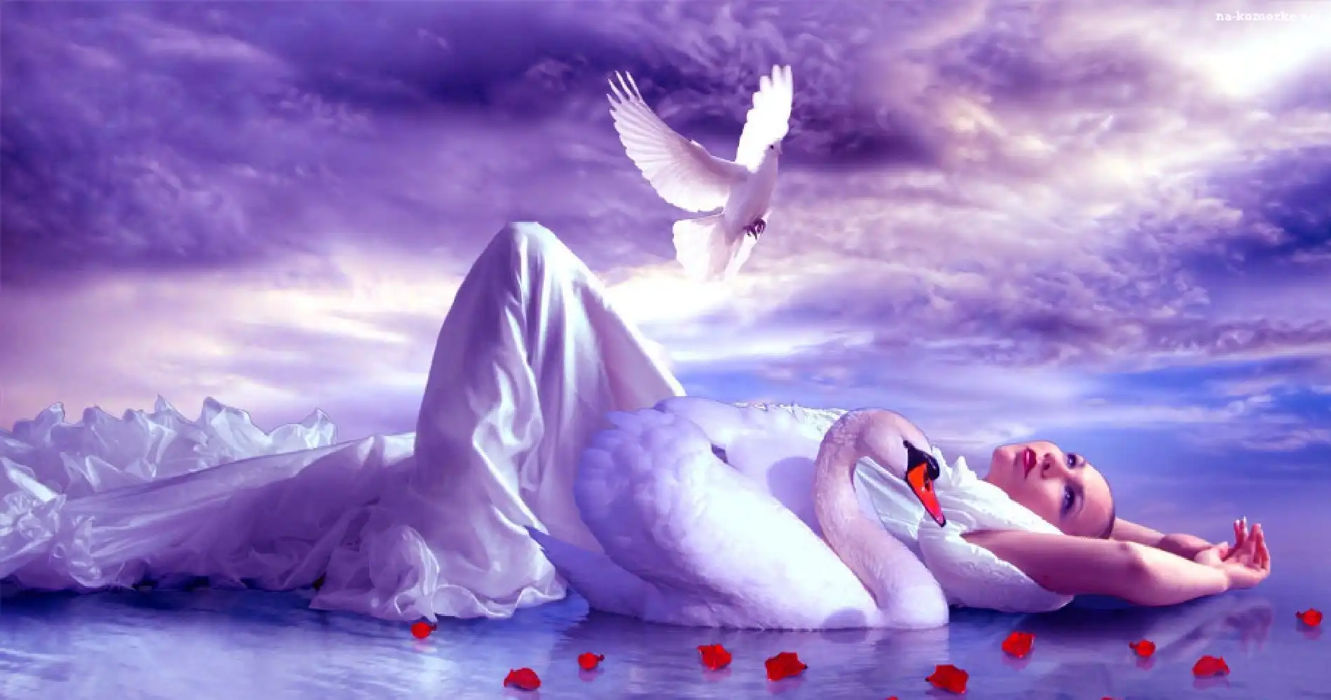 Fantasy, Kobieta, Biała, Suknia, Łabędz na Komórkę