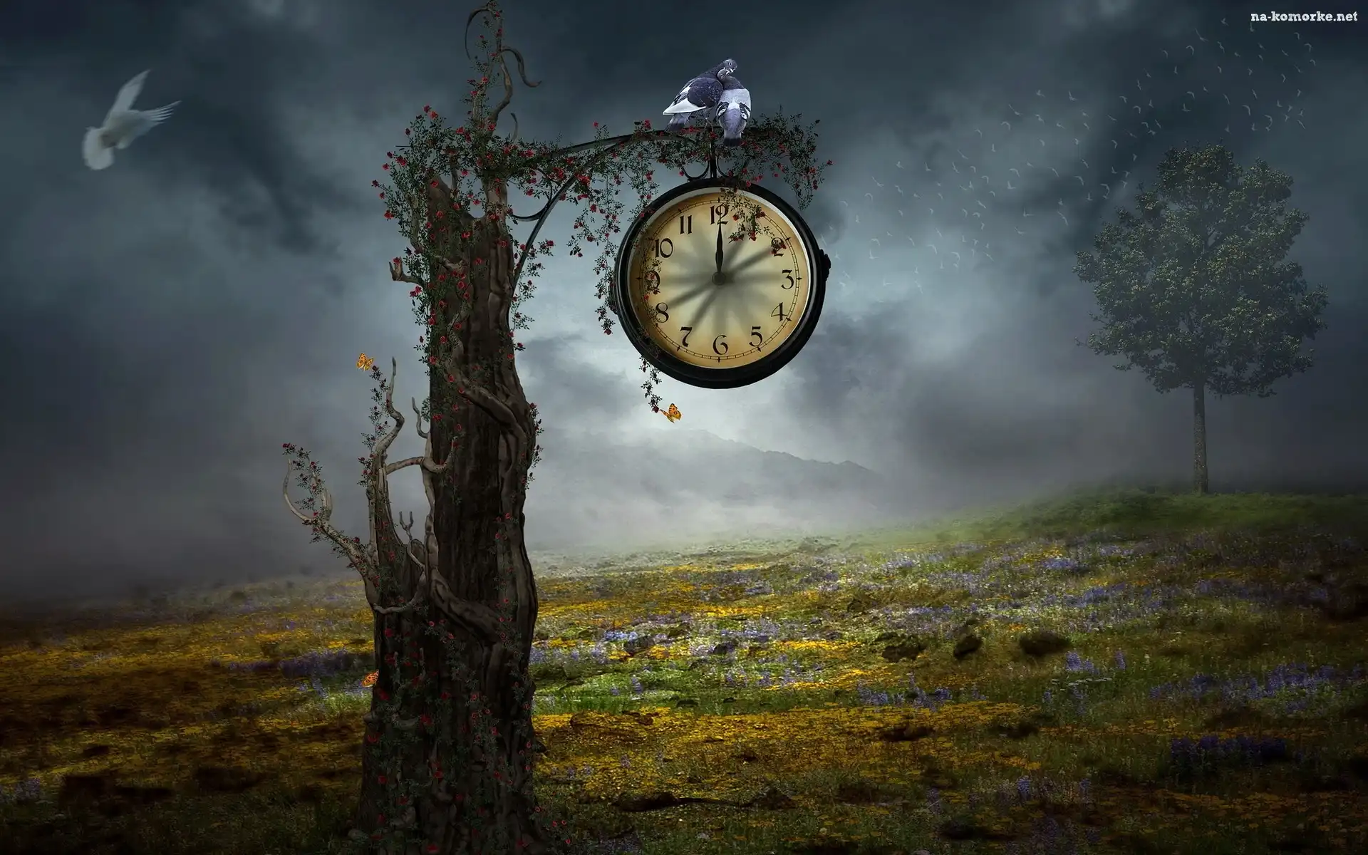 Fantasy, Ptaki, Zegar, Gołębie na Komórkę