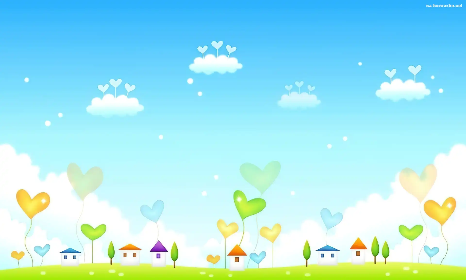 Fantazja, Domki, Drzewa, Serca, Chmury na Komórkę