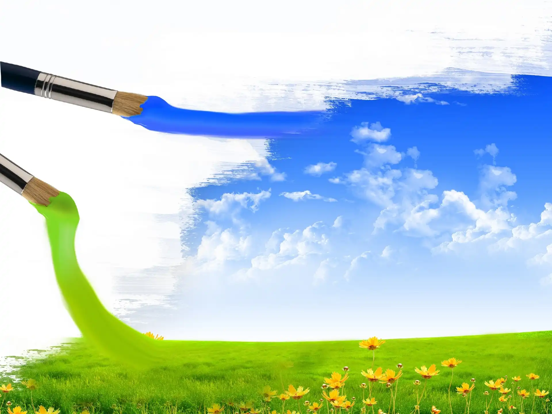 Farba, Niebo, Błękitne, Łąka, Pędzle, Zielona na Komórkę