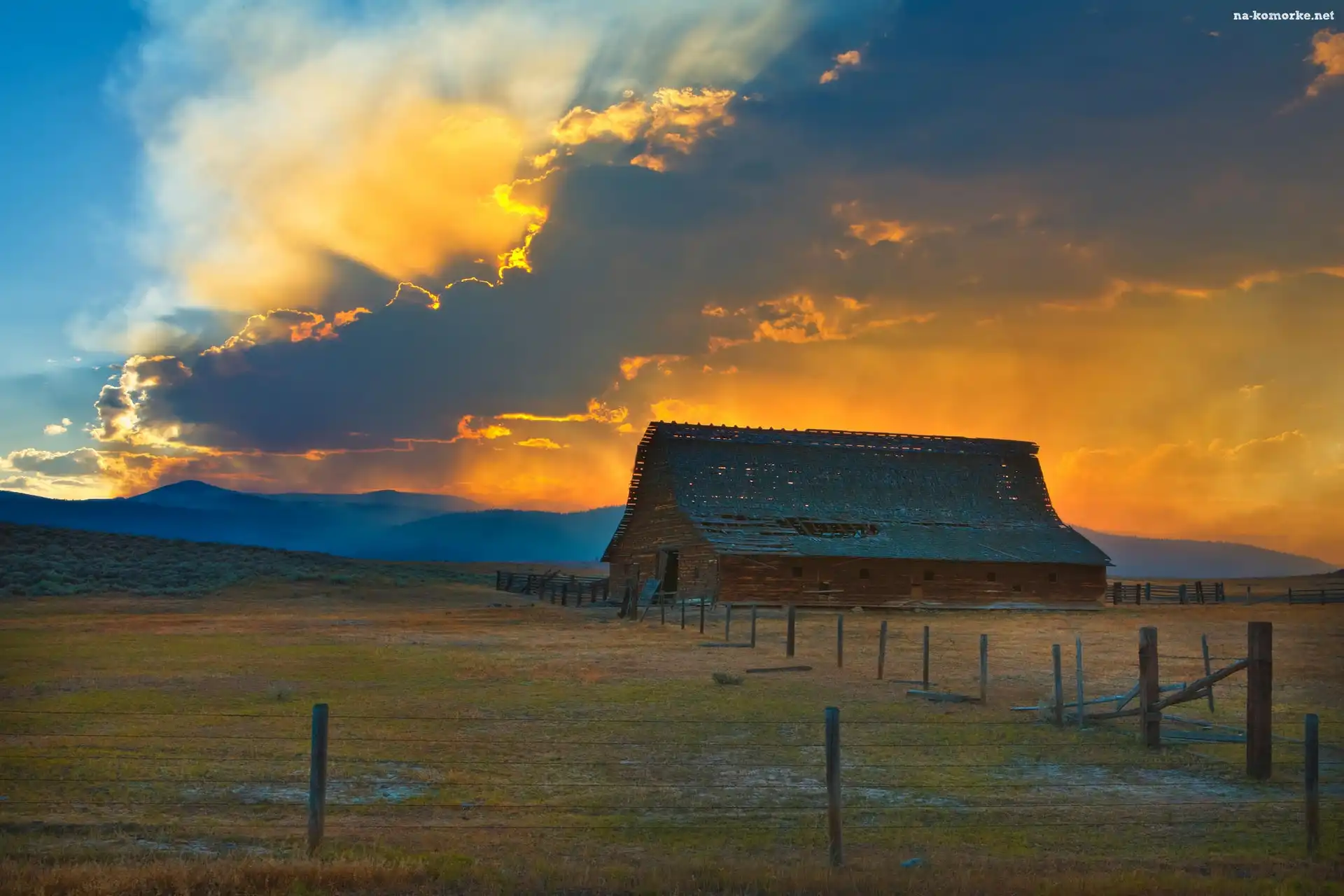 Farma, Chmury, Przebijające, Słońce, Szopa na Komórkę
