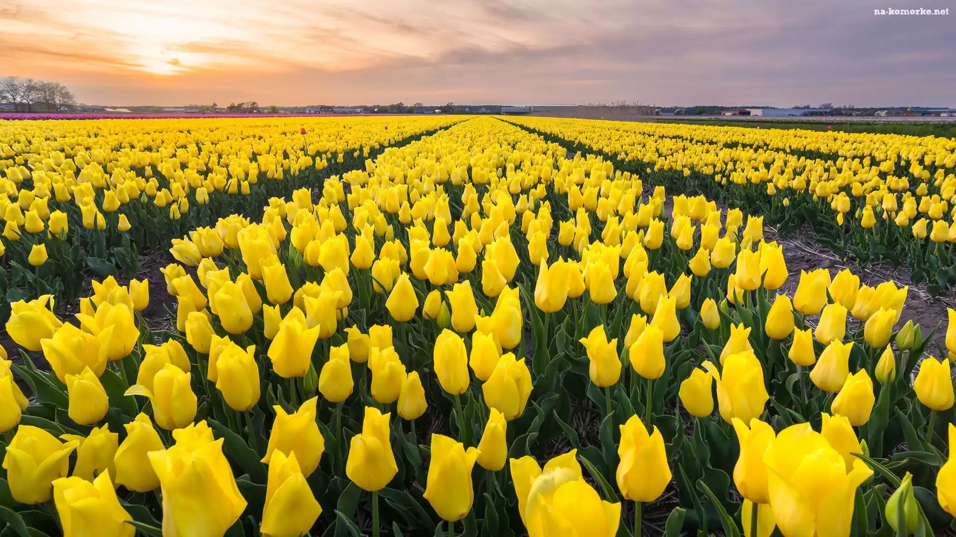 Tulipany, Żółte, Pole, Farmy na Komórkę